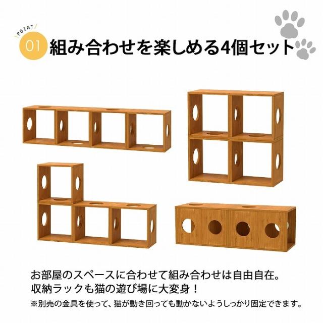猫 家具 棚 猫用キューブボックス 3穴 幅40cm 奥行30cm 高さ40cm 4個セット 組み合わせてキャットタワー 猫タワー 猫用アスレチック 猫ハウス 猫ホーム キャットハウス 猫グッズ カラーボックス 直径15cmの穴あき型オープンラック A4対応 木製 国産シート使用 日本製シート使用