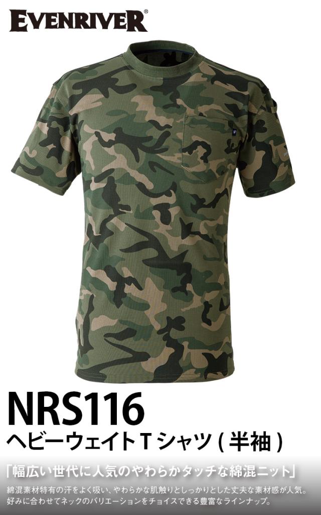 2025年新商品 EVENRIVERイーブンリバー ヘビーウェイト Tシャツ NRS116 綿混ニット 生地厚手 首リブ仕様 春夏半袖シャツ 作業着 作業服 迷彩柄 ミリタリーシャツ