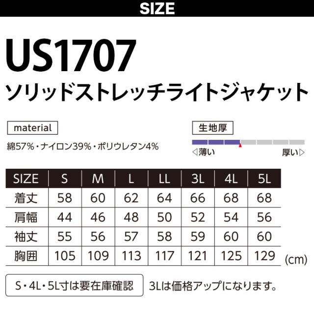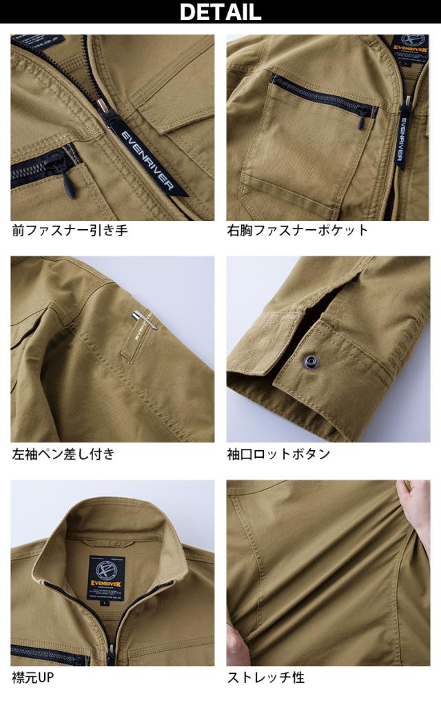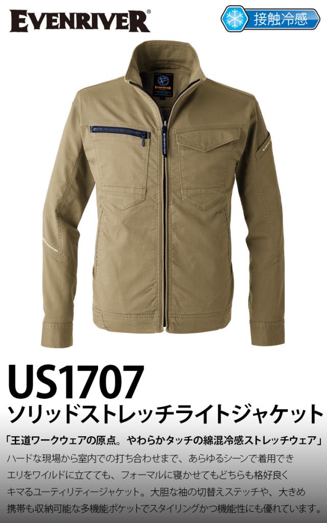 2025年新商品 EVENRIVER イーブンリバー ソリッドストレッチライトジャケット US1707 5L 大きいサイズ メンズ 男性用 作業ジャケット 上着 春夏用 吸汗性 綿の柔らか素材 接触冷感 春夏用