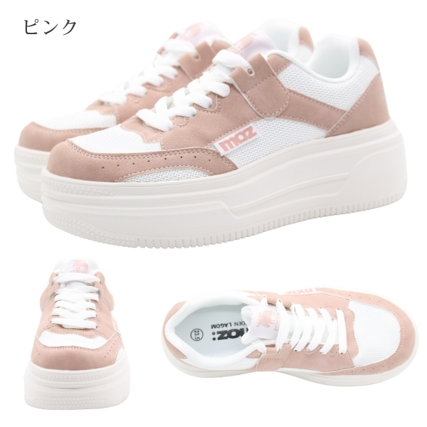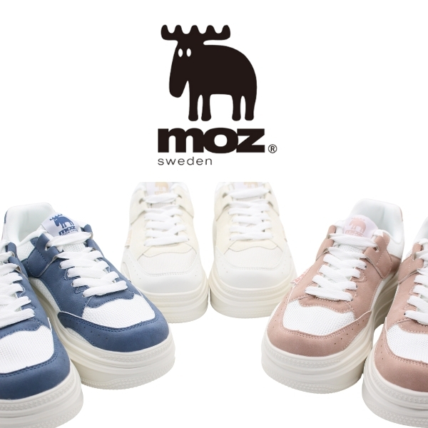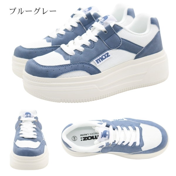 モズ スニーカー レディース 靴 おしゃれ かわいい 上品 シンプル 大人 軽量 軽い クッション 厚底 美脚 スウェーデン 北欧 歩きやすい 通勤 通学 疲れない 合皮 白 ホワイト 桃 ピンク 青灰 ブルーグレー ブランド moz MZ-3957