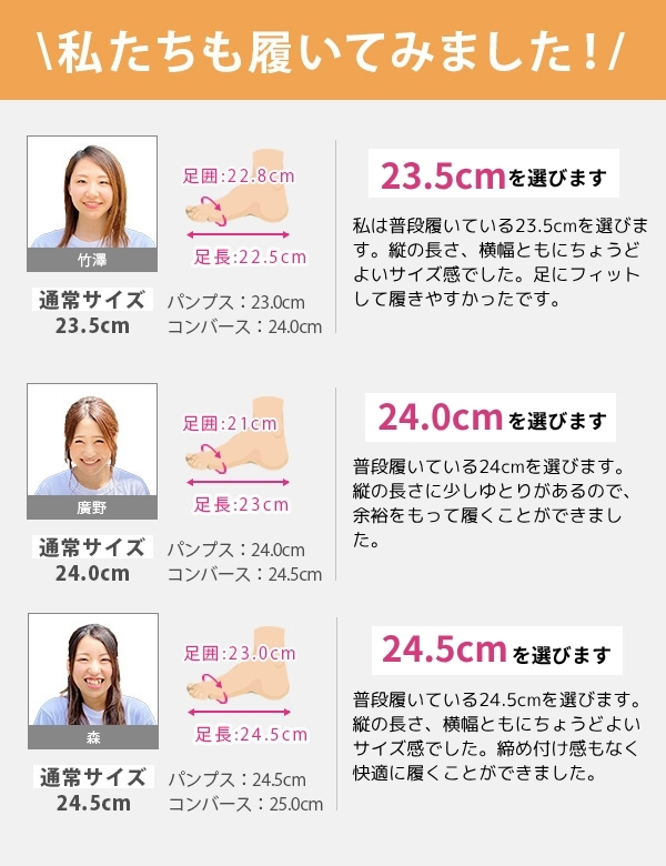 取り扱いサイズ:23cm 23.5cm 24cm 24.5cm