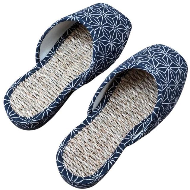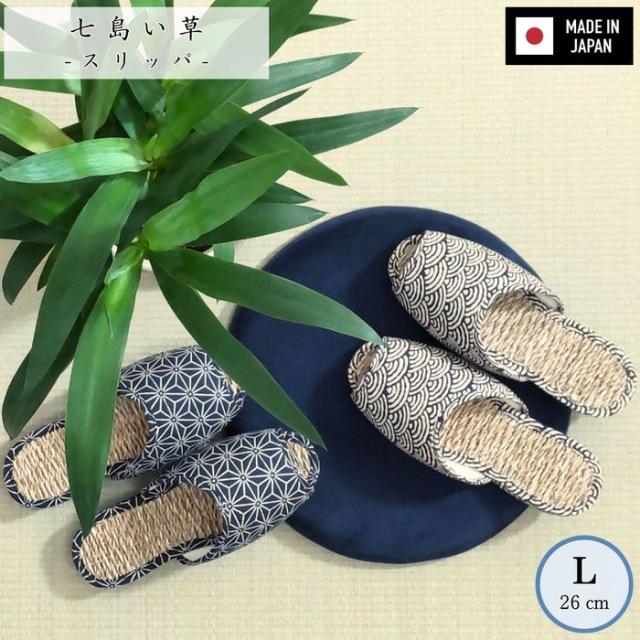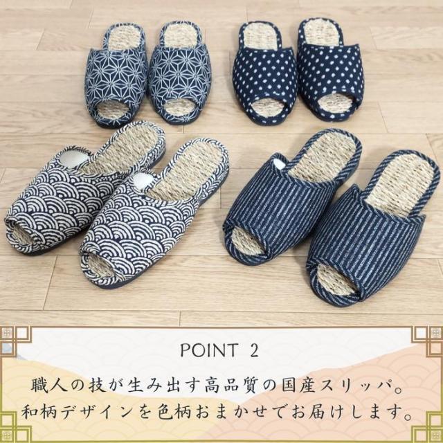 国産七島い草スリッパ 色柄おまかせ L:約26cm 足つぼ効果 丈夫で蒸れにくい 和柄
