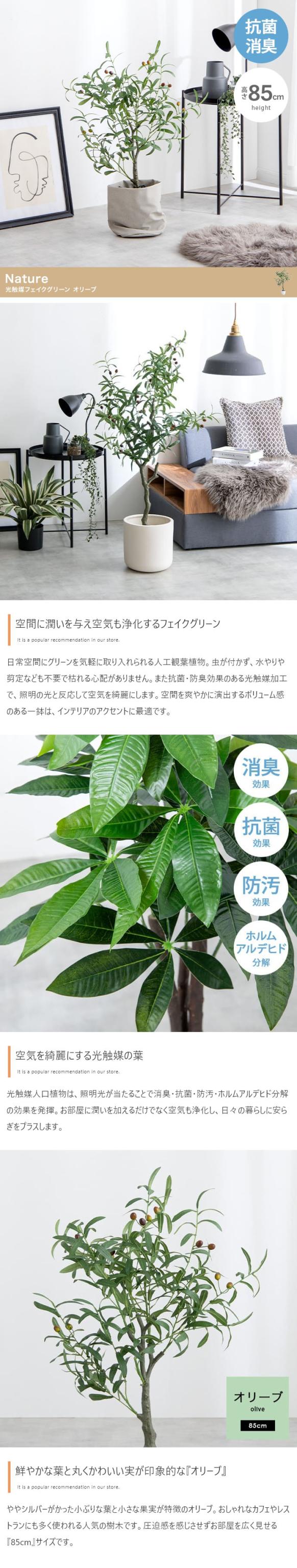 光触媒人工観葉植物 fake green オリーブ (約)幅35cm×奥行35cm×高さ85cm 照明光が当たることで消臭・抗菌・防汚・ホルムアルデヒド分解の効果を発揮 フェイクグリーン 造花 水やり不要 空気清浄 イミテーショングリーン
