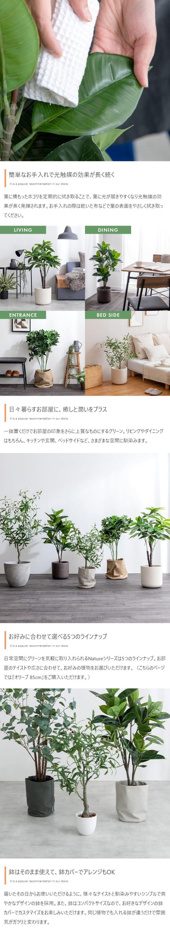 日常空間にグリーンを気軽に取り入れられる、光触媒人工観葉植物シリーズ。