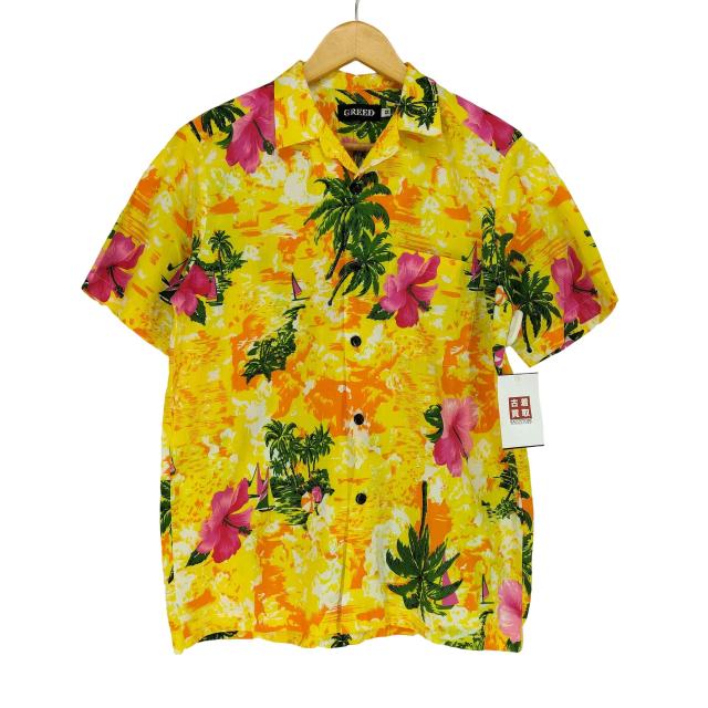 USED古着(ユーズドフルギ) GREED パームツリー ハイビスカス プリント半袖アロハシャツ メンズ SS【中古】【ブランド古着バズストア】