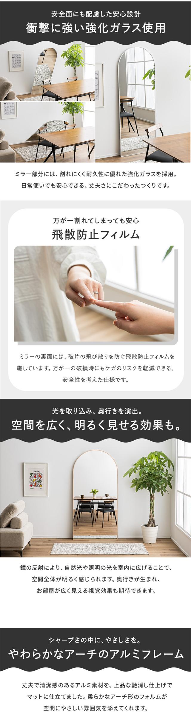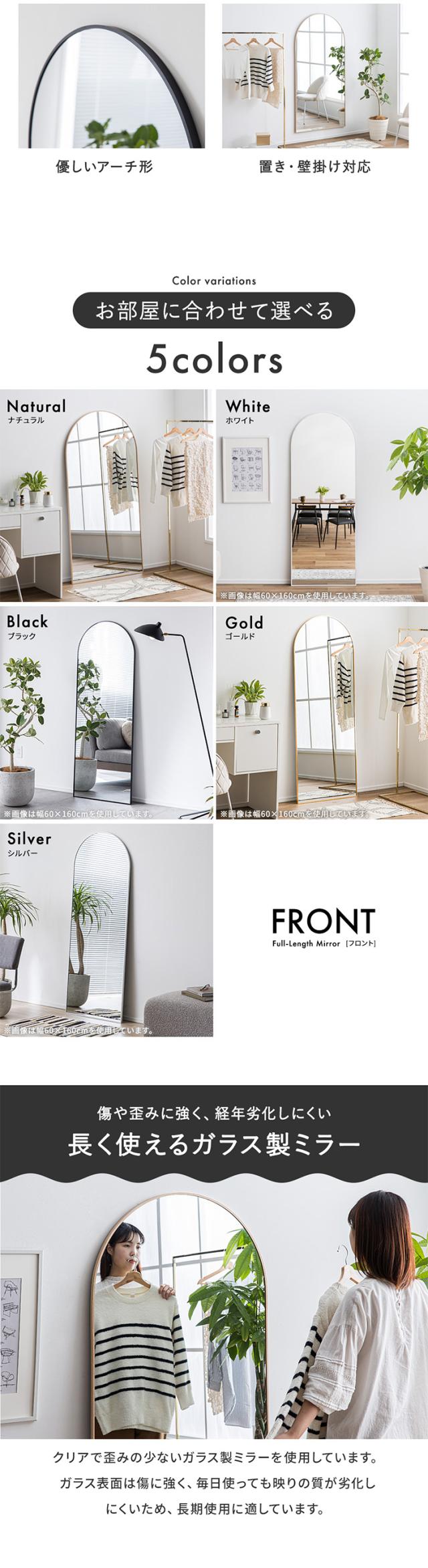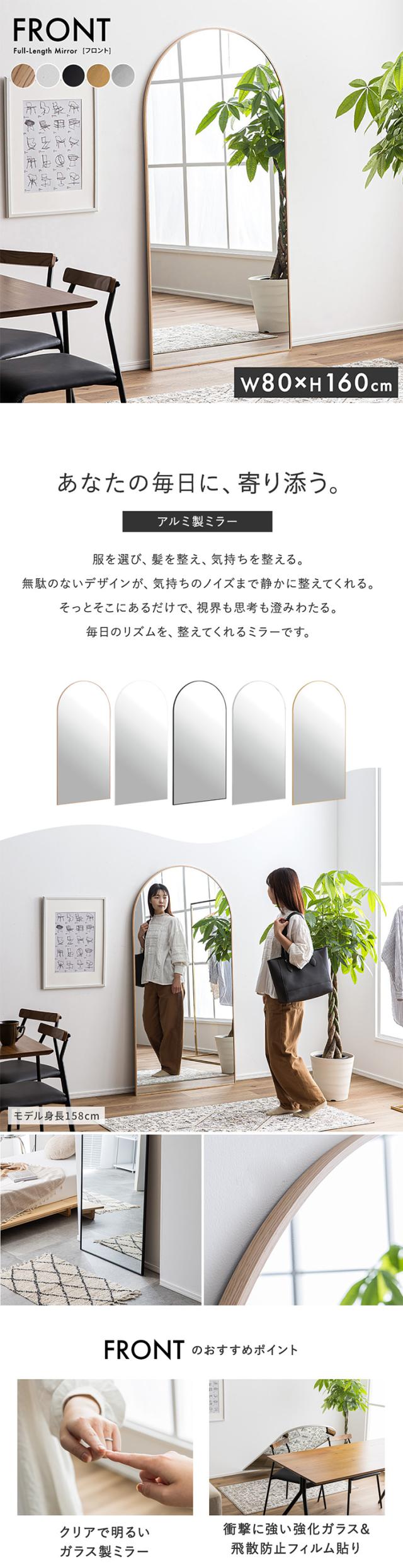 鏡 スタンドミラー 姿見 全身鏡 おしゃれ アーチ型 80x160cm Front(フロント) 5色対応 ミラー 全身ミラー かがみ 壁掛け 立て掛け 大型 軽量 薄型 アルミ製 強化ガラス 割れない 玄関 リビング 北欧