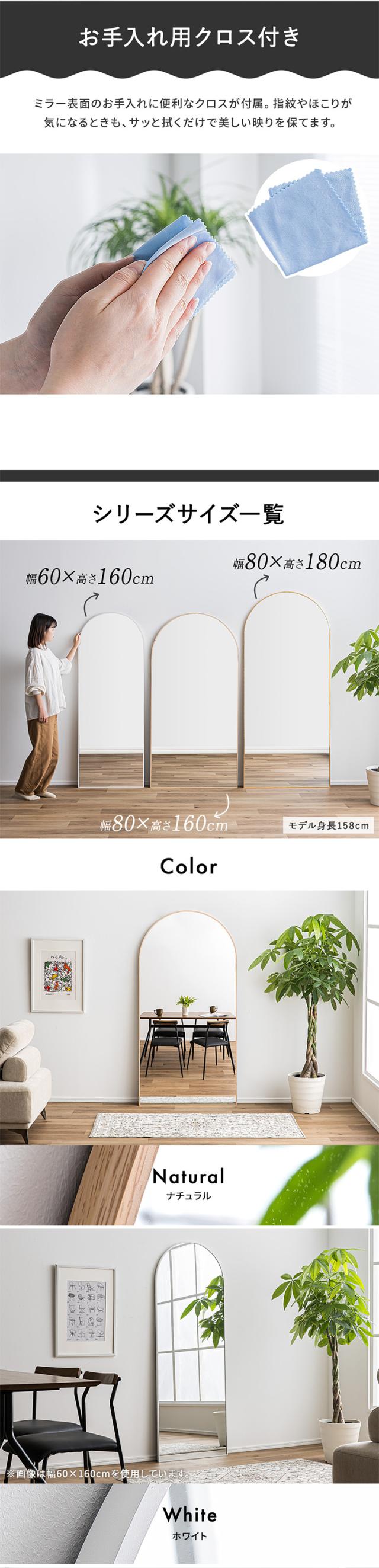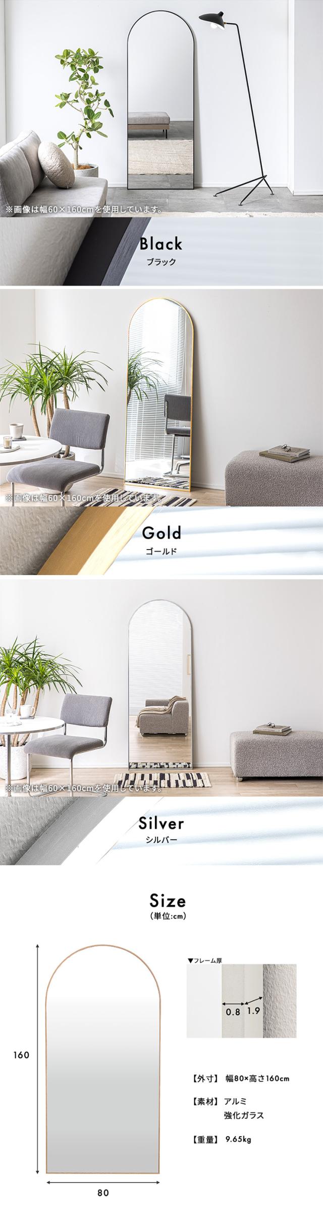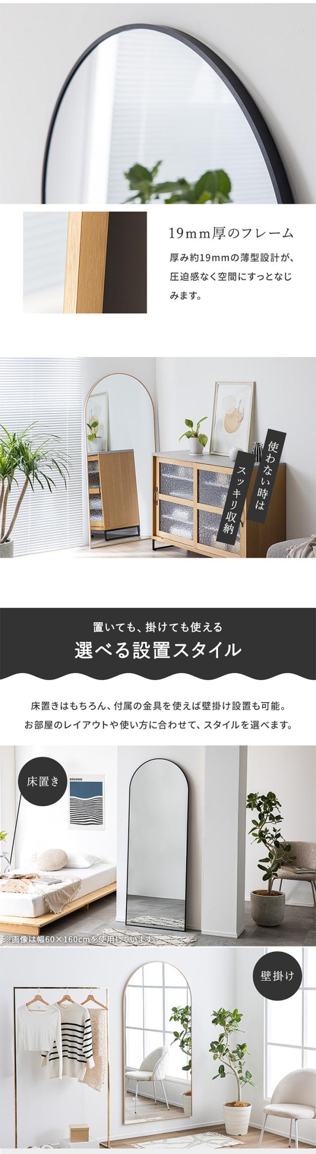 鏡 スタンドミラー 姿見 全身鏡 おしゃれ アーチ型 80x160cm Front(フロント) 5色対応 ミラー 全身ミラー かがみ 壁掛け 立て掛け 大型 軽量 薄型 アルミ製 強化ガラス 割れない 玄関 リビング 北欧