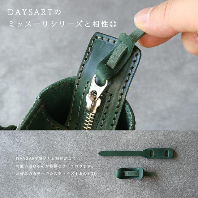 イタリアの老舗タンナー「La Perla Azzurra社」のミッスーリレザーを使用した、本革ファスナー引き手4個セットです。重厚な艶とオイル感が特徴で、使い込むほどに深まる色ツヤはこのレザーならではの魅力。当店のミッスーリレザー製バッグや財布と合わせて使えば、統一感あるカスタマイズに。壊れたジッパーの修理用としてはもちろん、手作りギフトやレザークラフト用のパーツとしてもおすすめです。