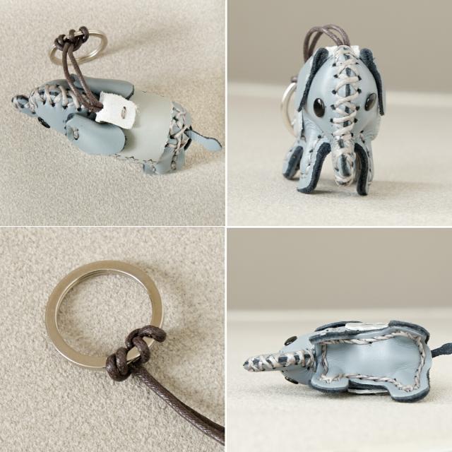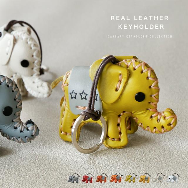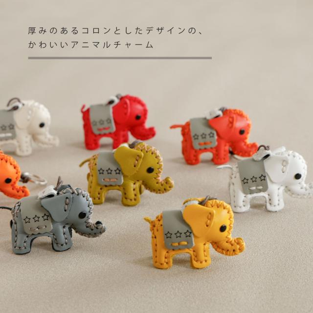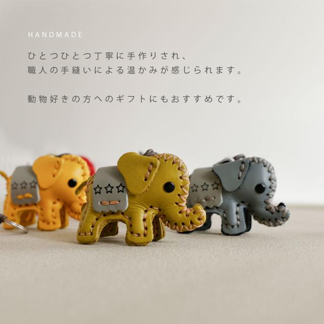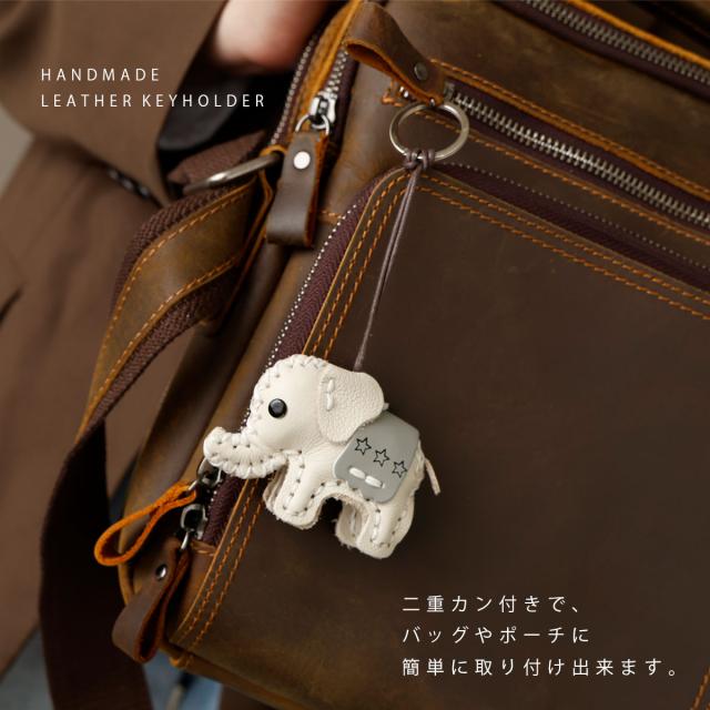 キーホルダー アニマル ゾウ レザー 本革 象 レディース メンズ キーリング かわいい ステッチ ハンドメイド 大人 プチギフト グレー ブラウン オレンジ レッド オリーブ イエロー アイボリー ホワイト