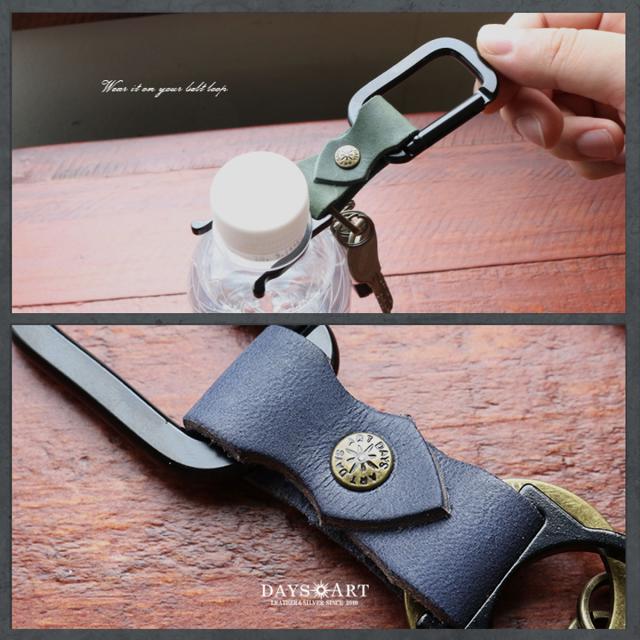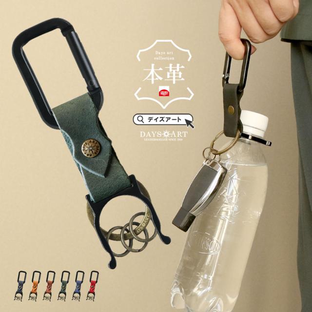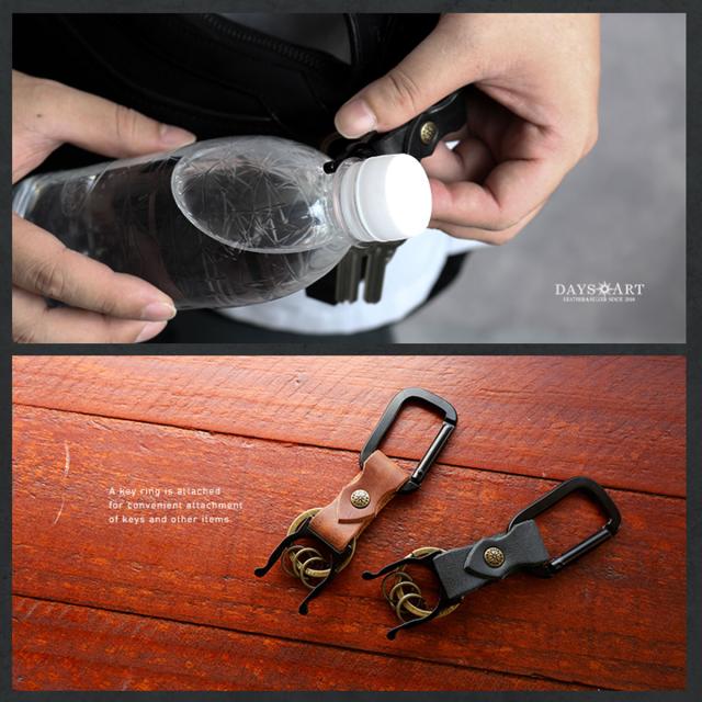 本革 キーホルダー カラビナ ペットボトルホルダー アウトドア バネフック オイルレザー 鍵 メンズ レディース
