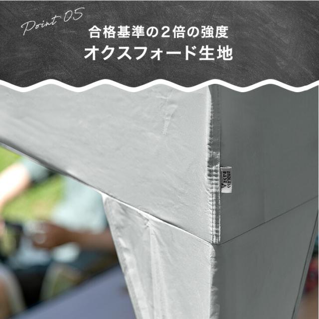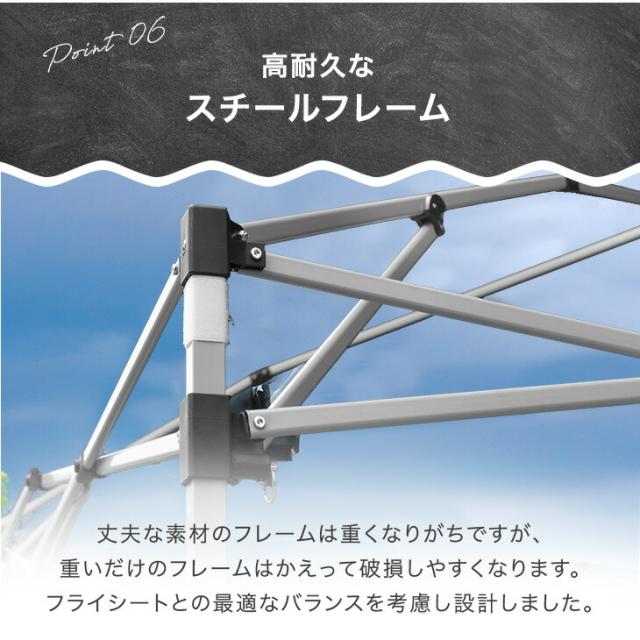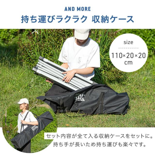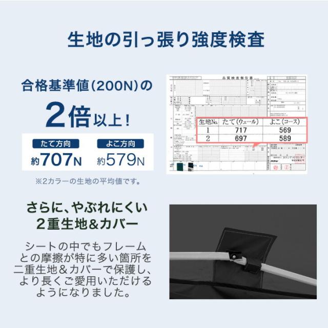 ※タープテントは構造上、風速5m以上の風の吹く場所での使用を行った場合、転倒や破損の原因となります。風がある場合は、高さ調整機能を用いて低く張る・撤収するなどの対応をお願い致します。