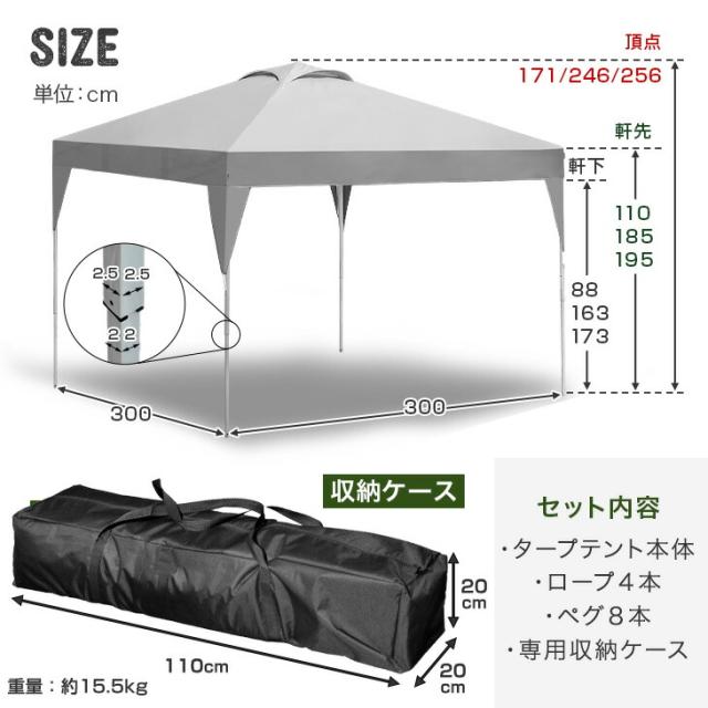 ■サイズ 外寸:幅300x奥行300x高さ256cm