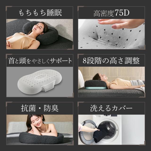 枕 まくら 極低反発 8段階高さ調整 日本企業 仰向け 横向き 痛くならない 首フィット 人間工学カーブ設計 贅沢モッチリ 竹炭配合 通気設計 ムレにくい 快眠 安眠 高級化粧箱 ギフト