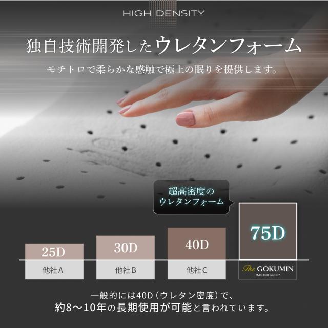独自開発した超高密度75Dの低反発ウレタンを使った極上枕です。人間工学に基づいたカーブ設計と優れた弾力や復元性を持った高品質低反発でゆっくり沈み込みます。思わず息がこぼれるような寝心地。