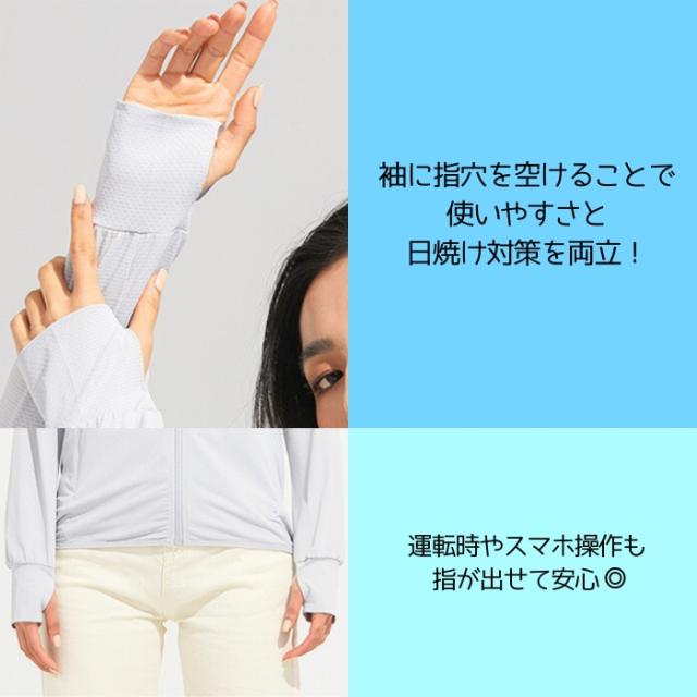 春新作 UVカット パーカー レディース ラッシュガード UVパーカー メンズ UPF50+ 紫外線対策 接触冷感 指穴 長袖 体型カバー 長袖 薄手 スポーツ ジム 涼しい[郵3]^bm1380^ ■