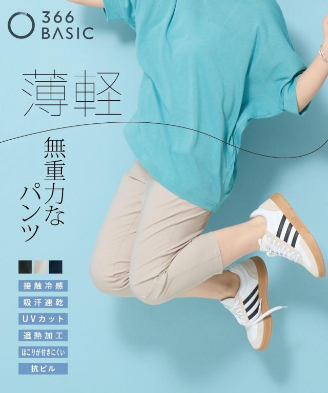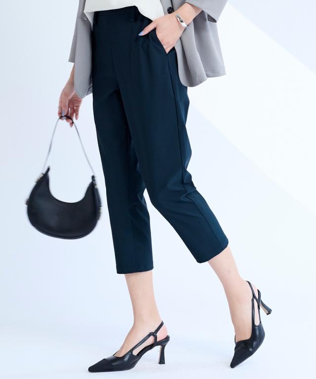 [うすカル素材]ストレッチテーパードクロップドパンツ(ゆったり太もも)(接触冷感・UVカット・吸汗速乾・遮熱加工) 大きいサイズ有