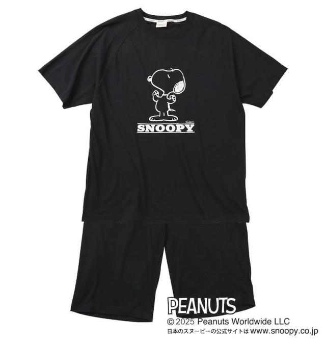 大きいサイズ PEANUTS 天竺 ラグラン 半袖Tシャツ+ハーフパンツ 上下セット ブラック 3L 4L 5L 6L 8L/1279-5210-2-59