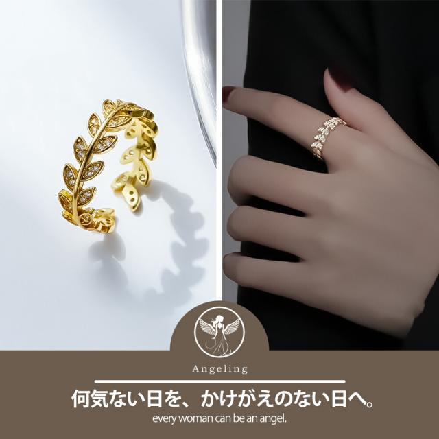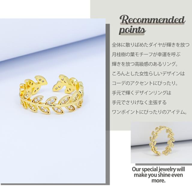 リング レディース 月桂樹 月桂冠 葉っぱ リーフ ゴールド CZダイヤモンド サージカルステンレス ブランド リング 誕生日