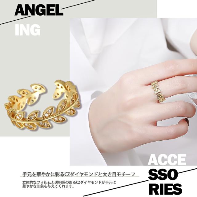 リング レディース オリーブリング オリーブリーフ ビクトリア リング リーフ ゴールド CZダイヤモンド サージカルステンレス ブランド リング 誕生日 プレゼント 金属アレルギー