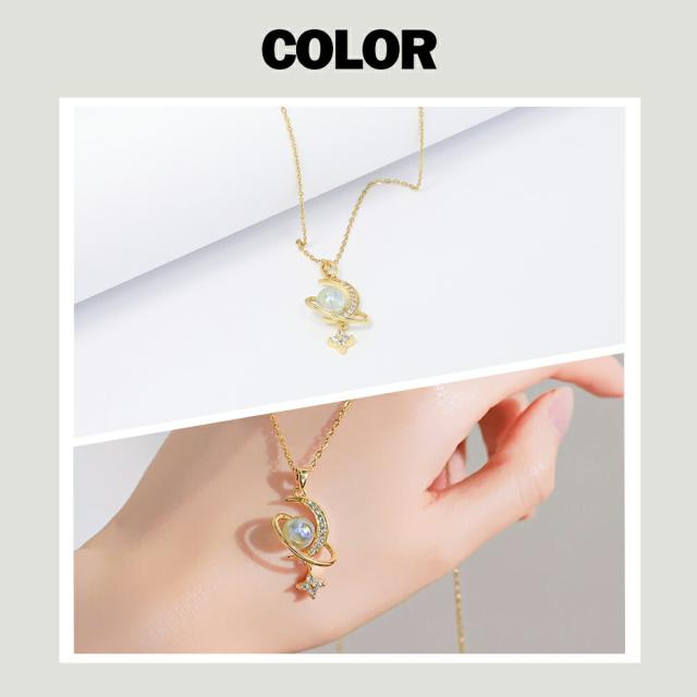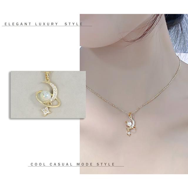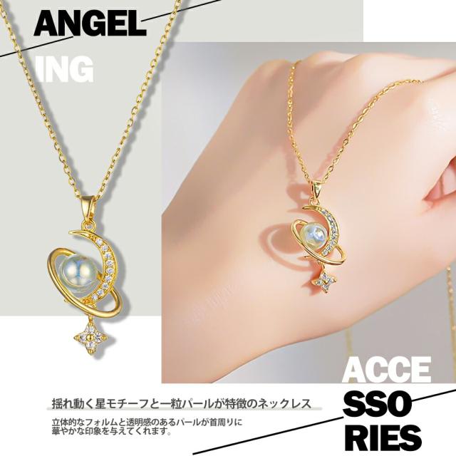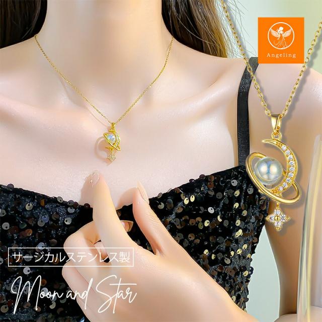 ネックレス レディース 揺れる 一粒パール 月 星 ムーン スター ゴールド 揺れるネックレス K18コーティング サージカルステンレス ブランド ネックレス 誕生日 プレゼント