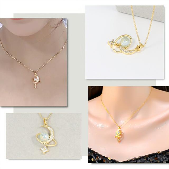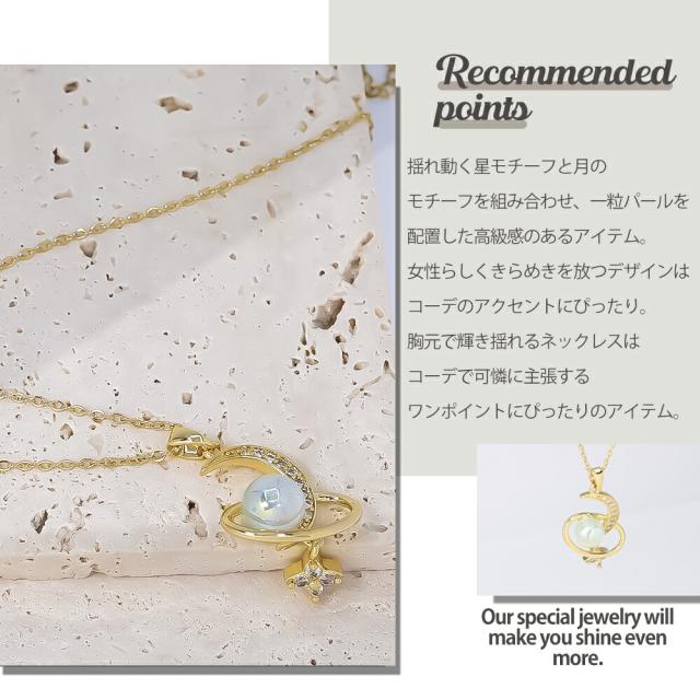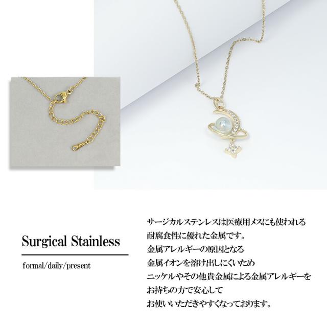 ネックレス レディース 揺れる 一粒パール 月 星 ムーン スター ゴールド 揺れるネックレス K18コーティング サージカルステンレス ブランド ネックレス 誕生日 プレゼント 金属アレルギー