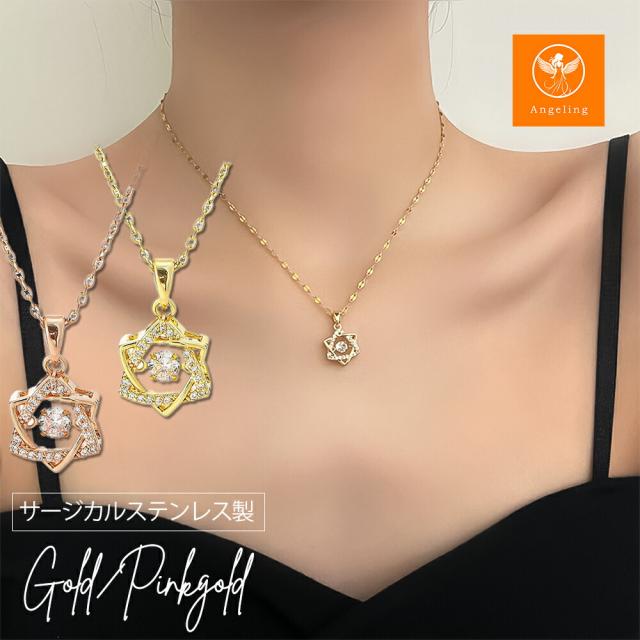ネックレス レディース ダンシングストーン 六芒星 ゴールド シルバー ネックレス サージカルステンレス ブランド ペンダント 誕生日 プレゼント 結婚記念日 女性 彼女 妻 嫁 金属アレルギー