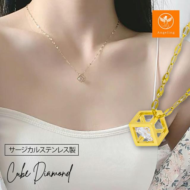 ネックレス レディース キューブモチーフ 四角 CZダイヤモンド キューブ ネックレス ダンシングストーン ゴールド サージカルステンレス K18コーティング ブランド ネックレス 誕生日 プレゼント 金属アレルギー