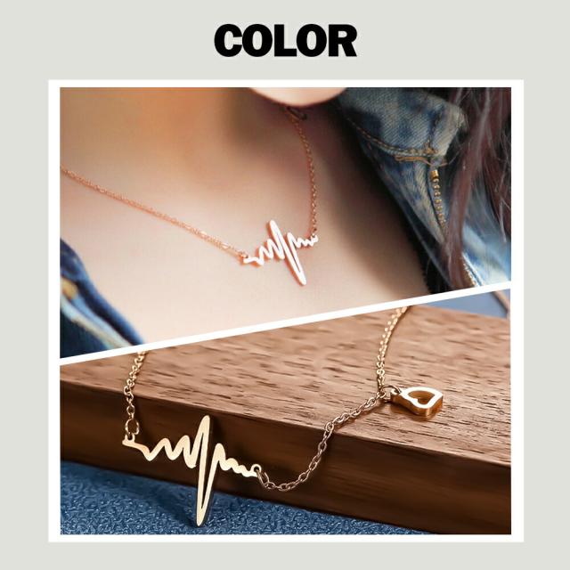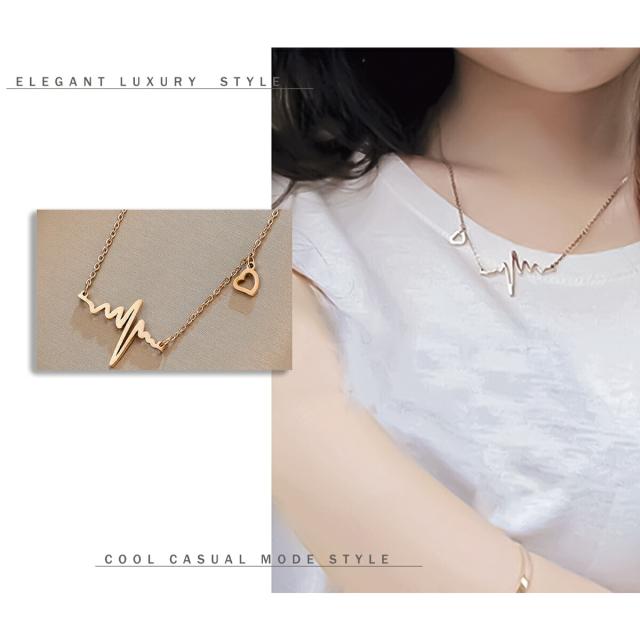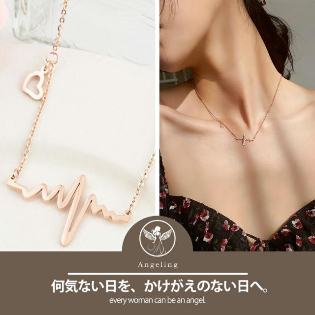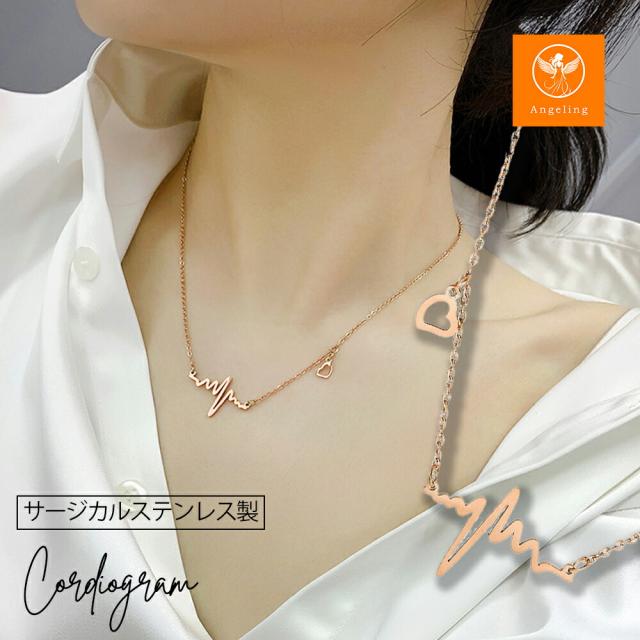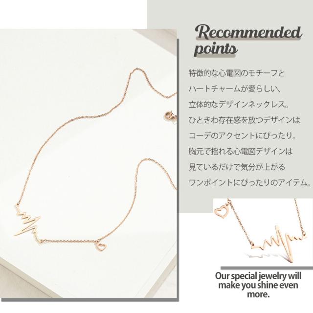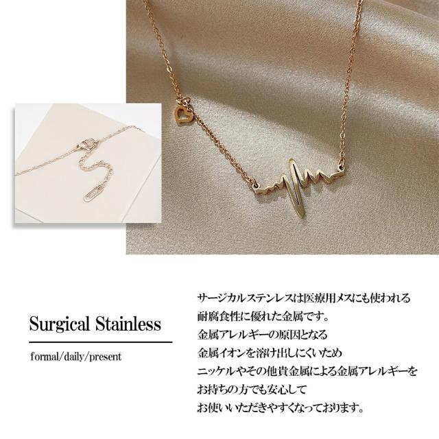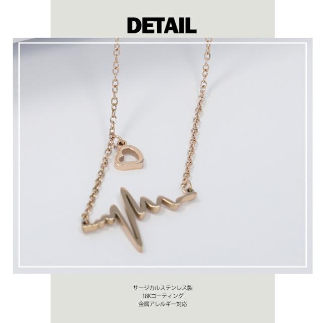 ネックレス レディース 心電図モチーフ ハートチャーム シンプル ゴールド デザインネックレス 愛され ネックレス サージカルステンレス K18コーティング ブランド ネックレス 誕生日 プレゼント 金属アレルギー