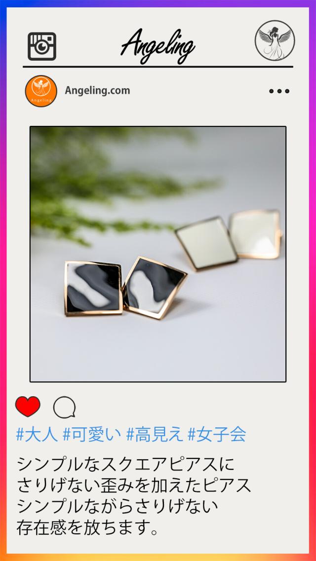 ピアス シンプル スクエア ピアス ゴールド 歪み ピアス 四角 ピアス メンズライク ピアス シンプルピアス ピアス 大きいピアス 金属アレルギー対応 金アレ サージカルステンレス 316L