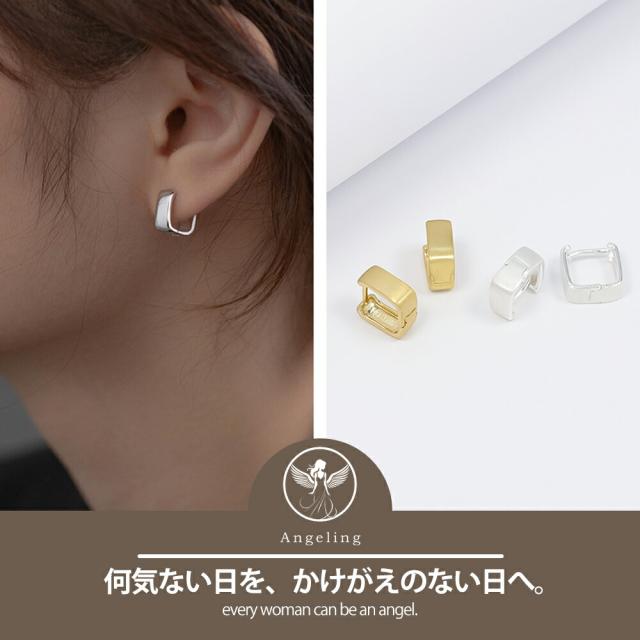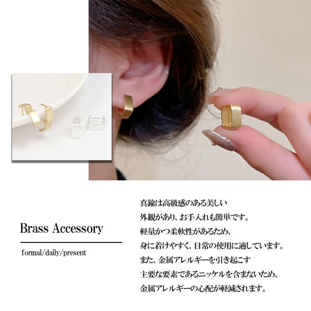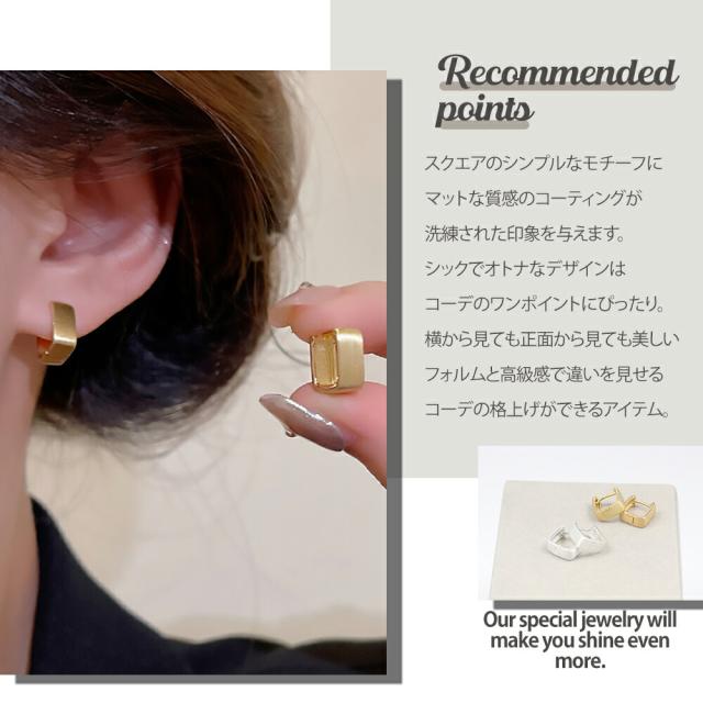 フープピアス レディース スクエアピアス シンプル デザインピアス マットゴールド マットシルバー 愛されピアス シンプルピアス 真鍮製 K18コーティング