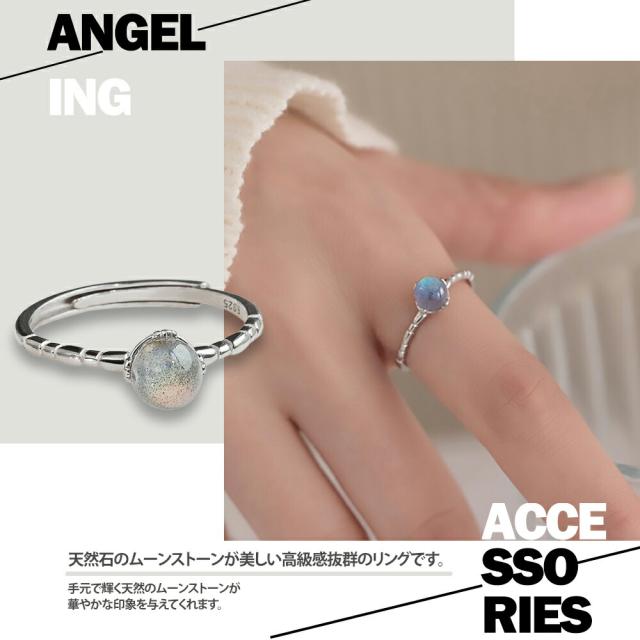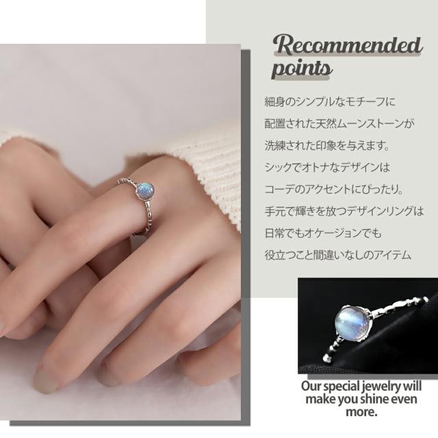 リング レディース 天然石リング ムーンストーン リング 天然石 シンプル デザインリング シルバー 細身 細め SV925製 スターリングシルバー ロジウムコ