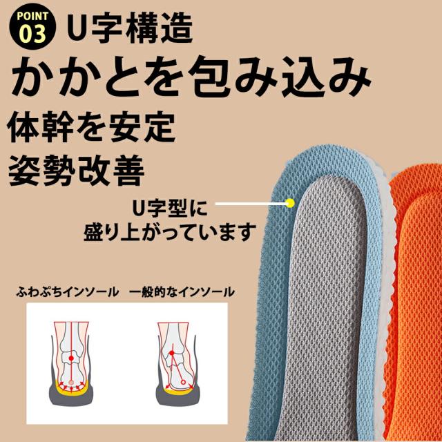 累計100万足突破商品日本上陸! ふわふわ ぷちぷち 歩くのが楽しくなる クッション性 立ち仕事 ウォーキング 散歩 かかと 衝撃吸収 アーチサポート ランニング シークレットインソール