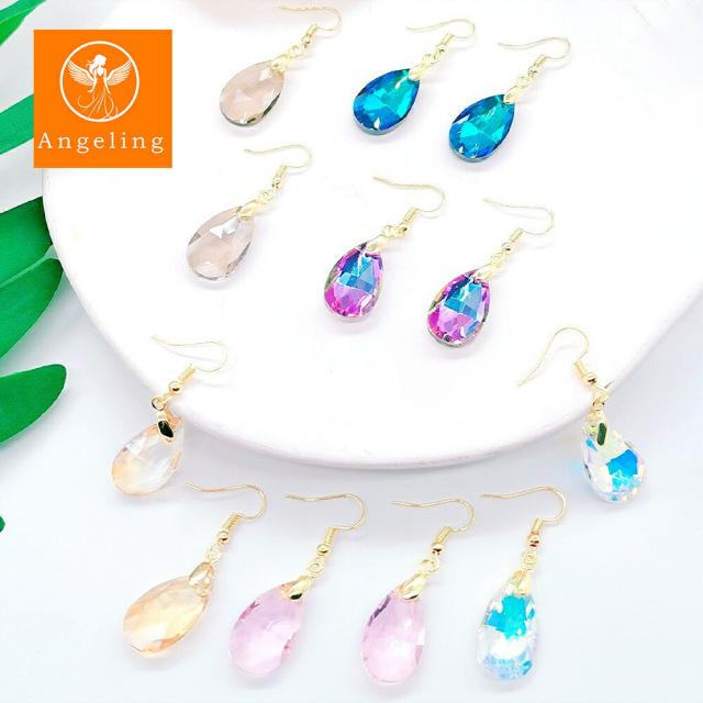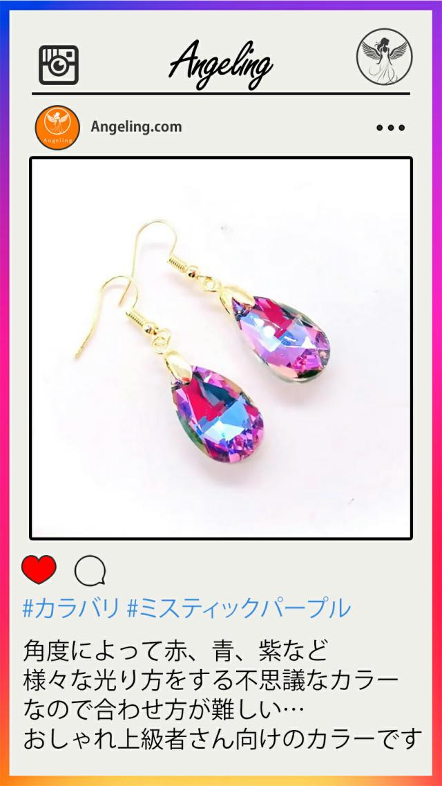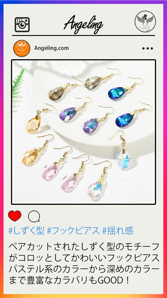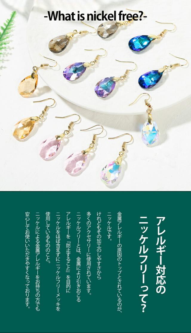 ティアドロップ クリスタル ピアス しずく ピアス 18kコーティング レディース フック 揺れる グラデーション ティアドロップ 雫 大人 上品 華奢 シンプル パープル