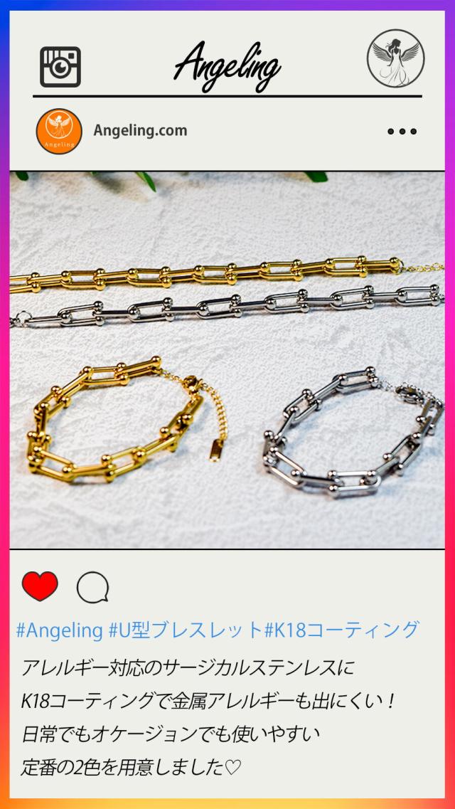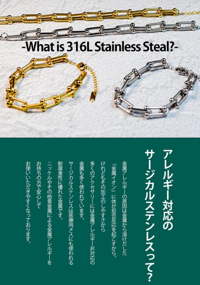 U型ブレスレット 鎖 ブレスレット レディース チェーン サージカルステンレス 316L ステンレス シルバー ゴールド 18k18金 k18 仕上げ ニッケルフリー 金属アレルギー U字型アクセサリー