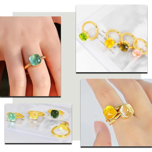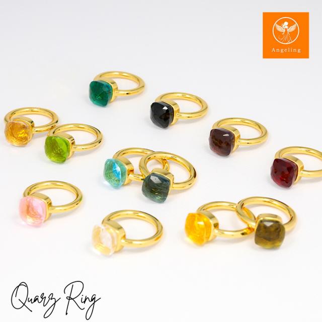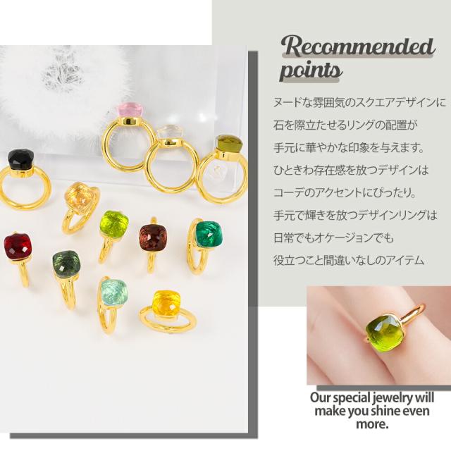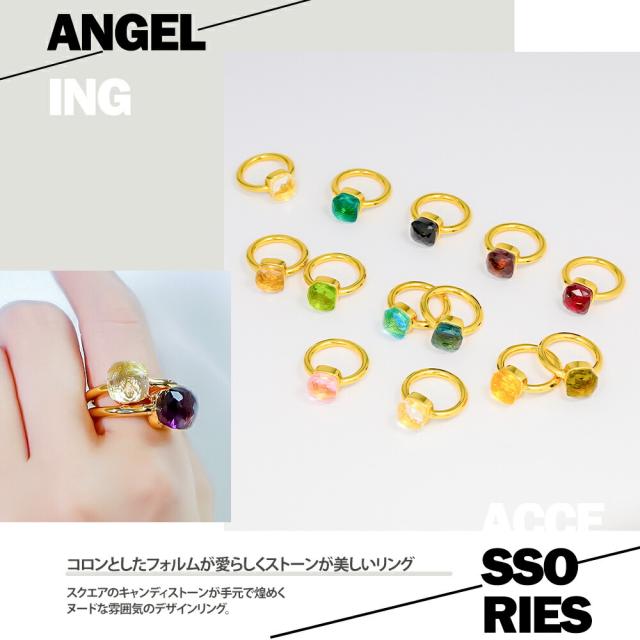 スクエア 可愛い 人気のヌードリング シトリン アメジスト ペリドット クリスタル グリーンクオーツ ブルートパーズ カジュアルリング パワーストーン 韓国ファッション 韓国リング