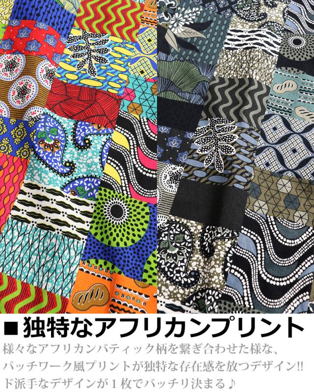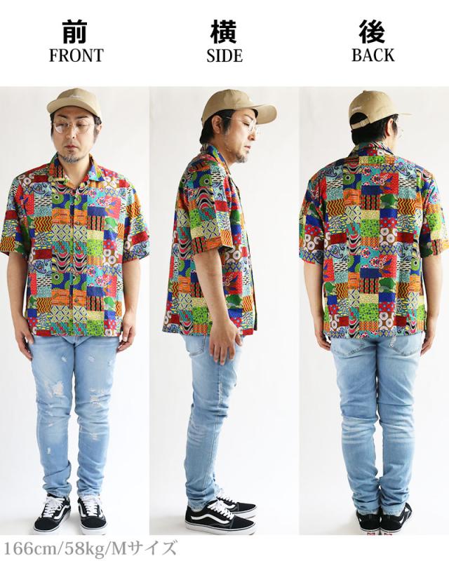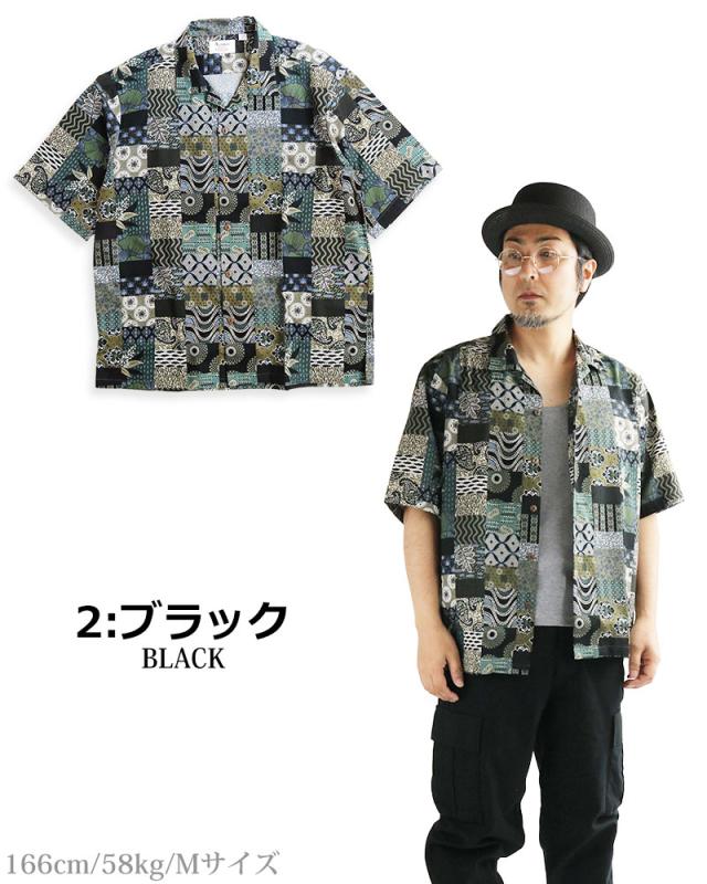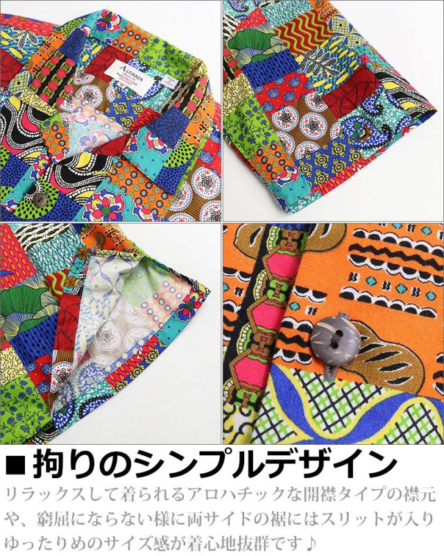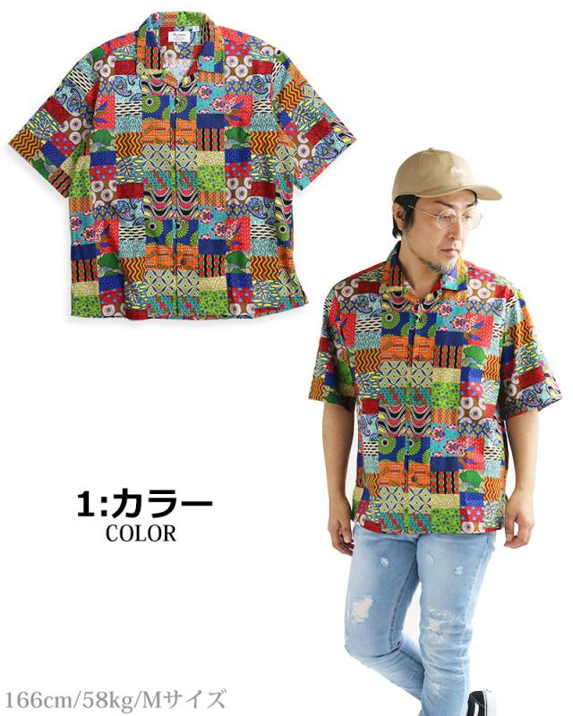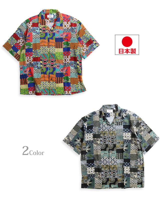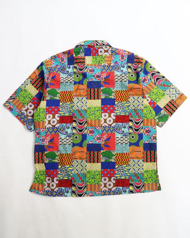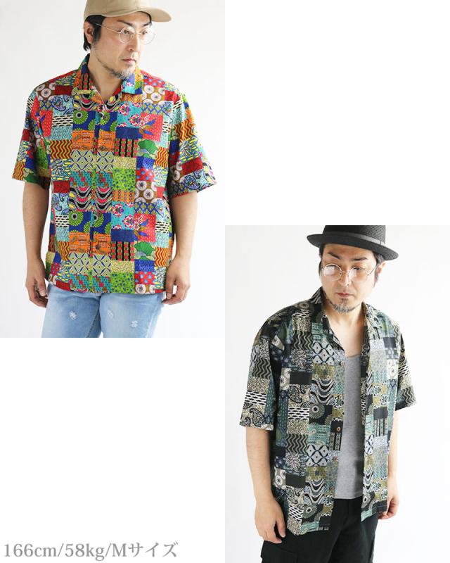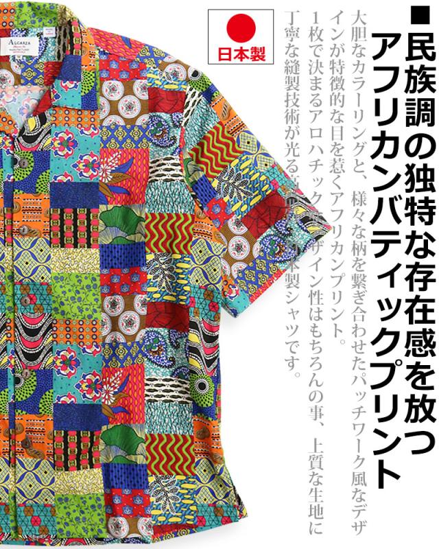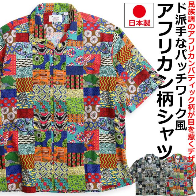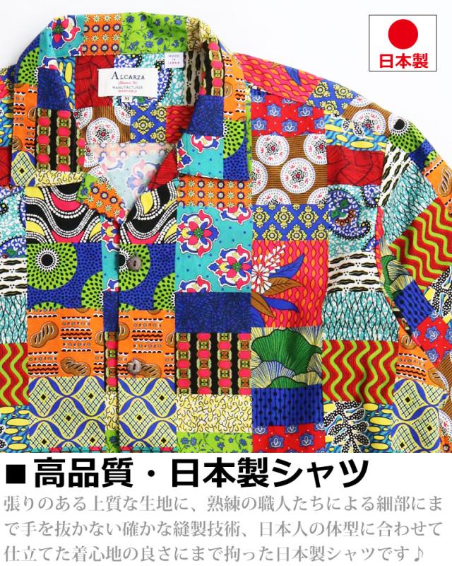 ALCARZA アルカーザ アフリカンバティック パッチワーク オープンシャツ メンズ 半袖 開襟 アロハ オープンカラー 派手 夏 父の日