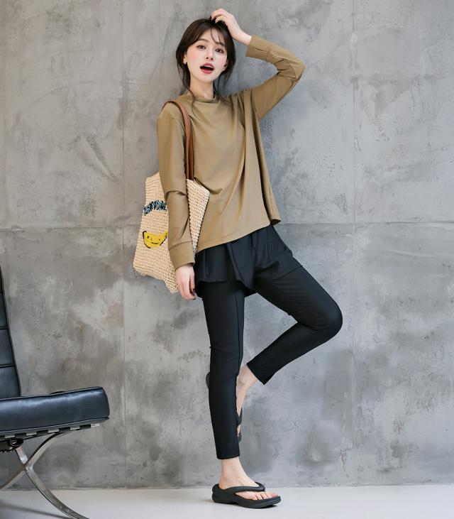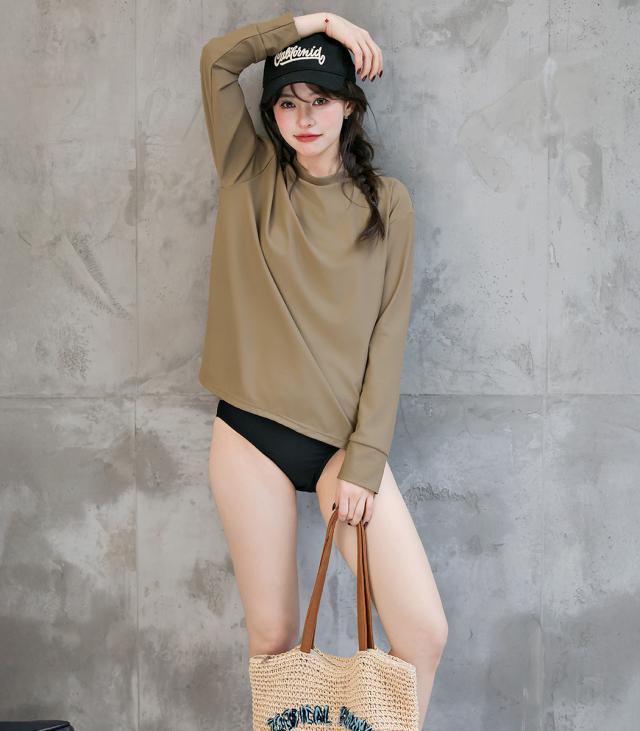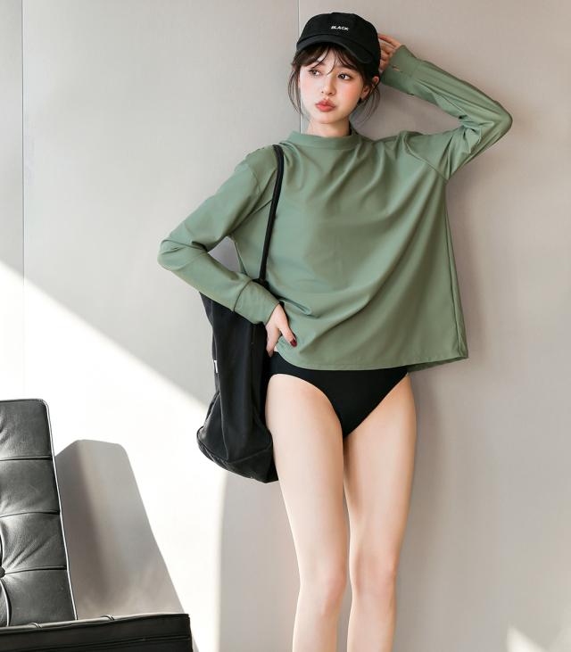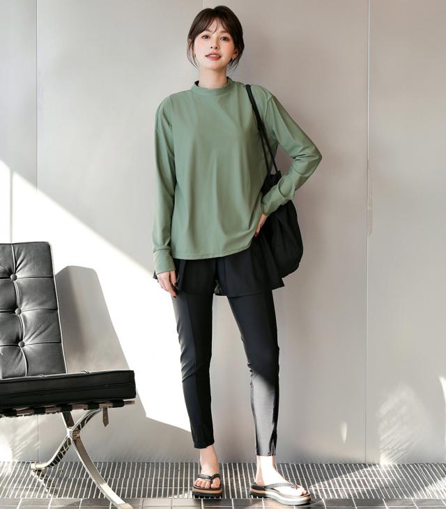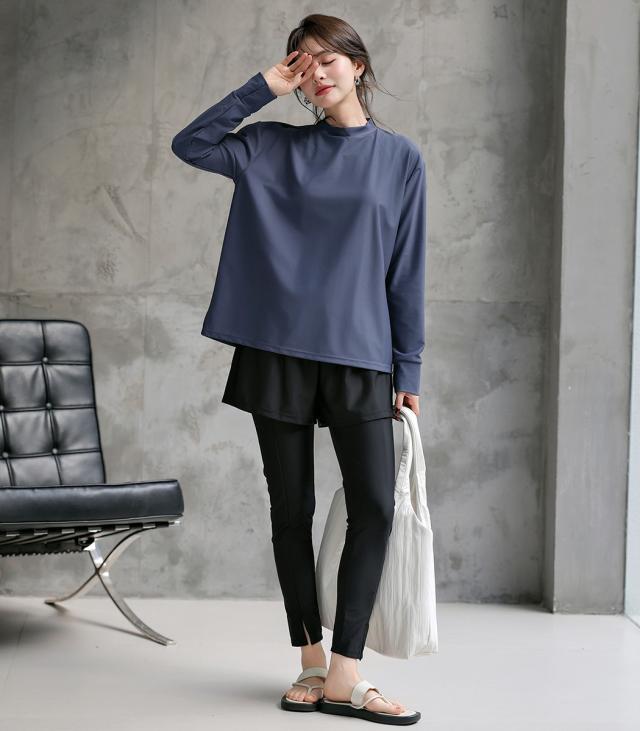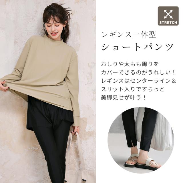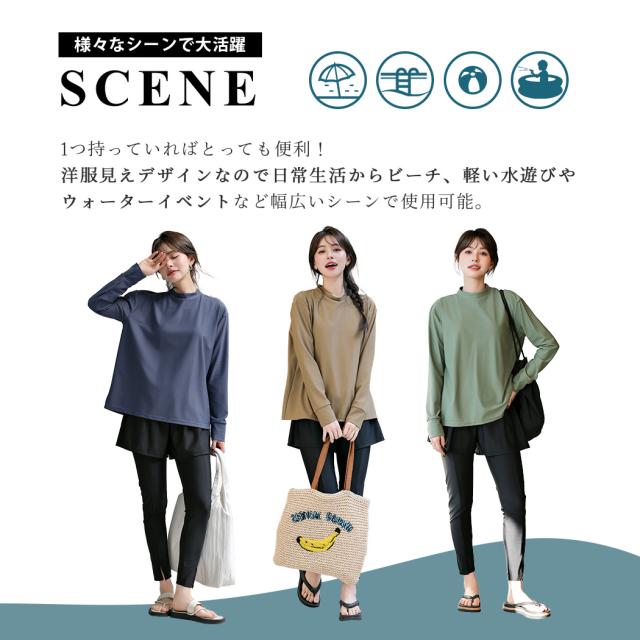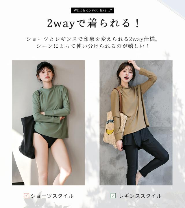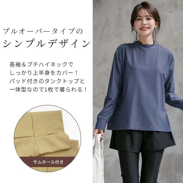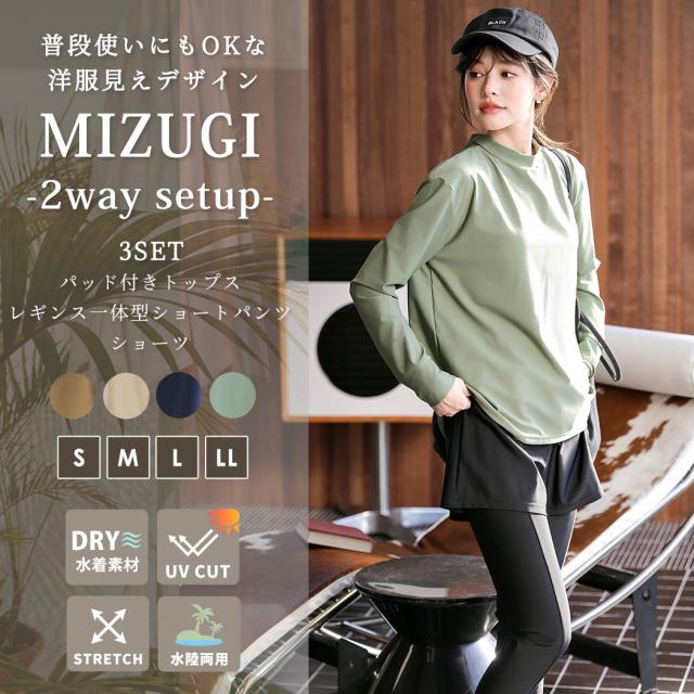夏新作 水着 体型カバー レディース ラッシュガード トップス 長袖 パッド付き レギンス付き ショーツ UPF50+ 紫外線対策 3点セット 水陸両用 上下セット プチハイネック サムホール 二の腕 ウエスト ヒップ 太もも 脚 カバーアップ ママ水着 露出控えめ