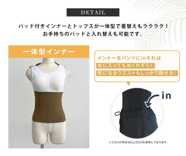 パッド付きインナーとトップスが一体型で着替えもラクラク!