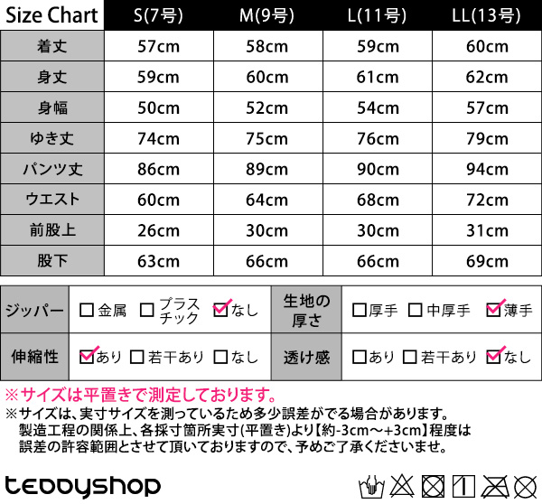 製造工程の関係上、各採寸箇所実寸(平置き)より【約-3cm〜+3cm】程度は