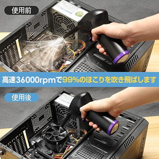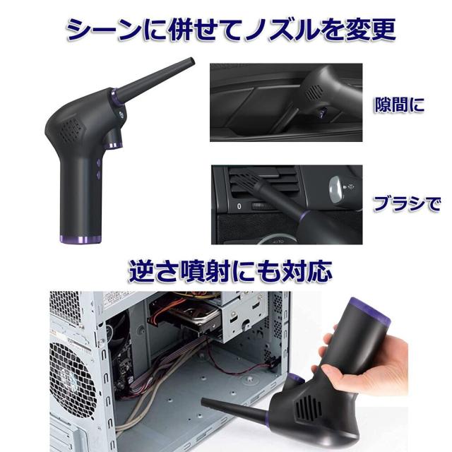 電動 エアダスター 小型 超ハイパワー 強力 エアーダスター 爆風 70m/s 36000RPM強力風速 USB充電式 不燃性 エアー スプレー エアスプレー ガン キーボード PC 掃除 空気入れ パソコン 埃 ほこり コンピューター OA機器 キーボード オフィス 家庭用エアダスター シンプル