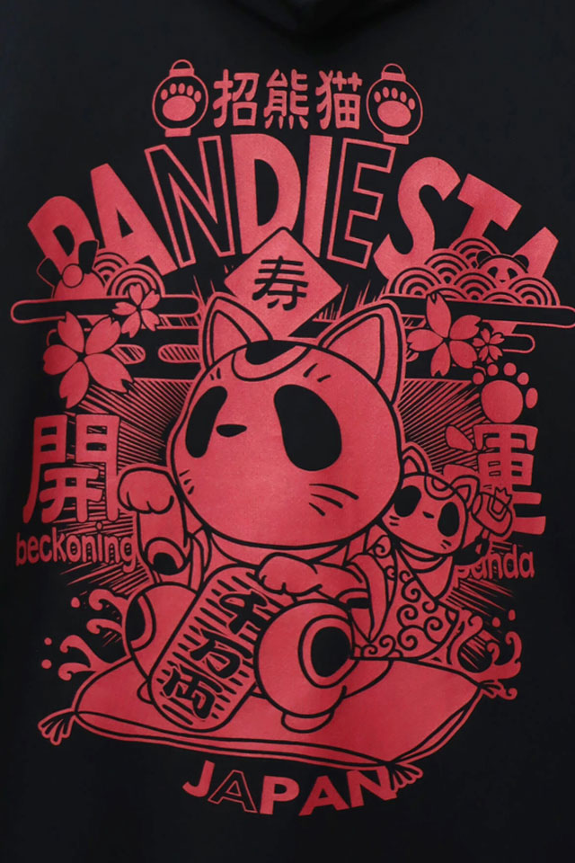 年末年始の縁起物としてピッタリなデザイン『開運!招き熊猫』をモチーフにしたフルジップパーカーになります。