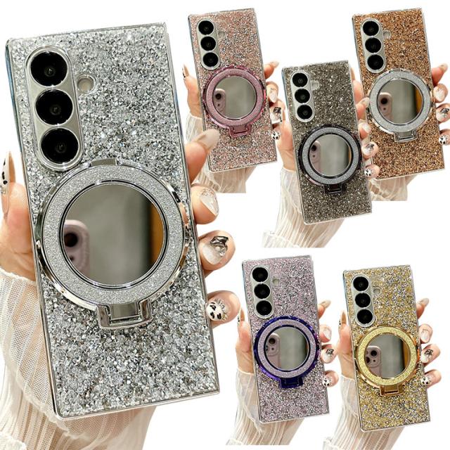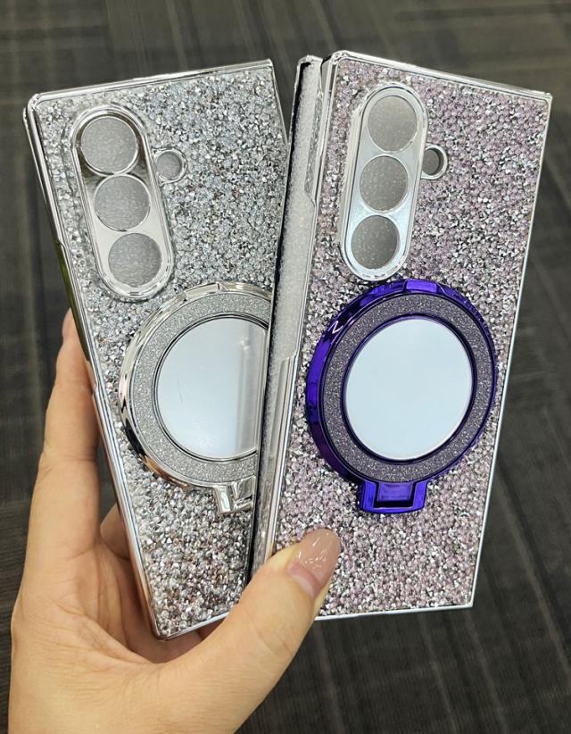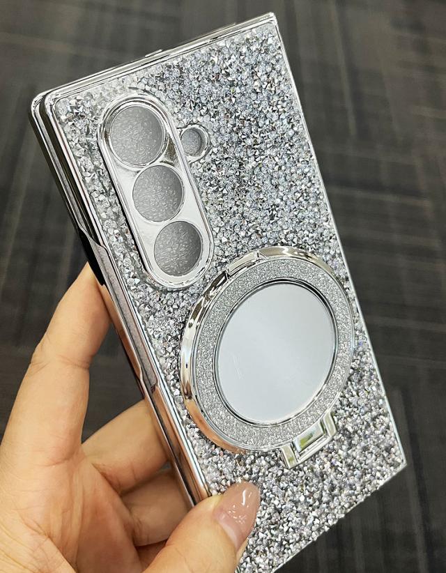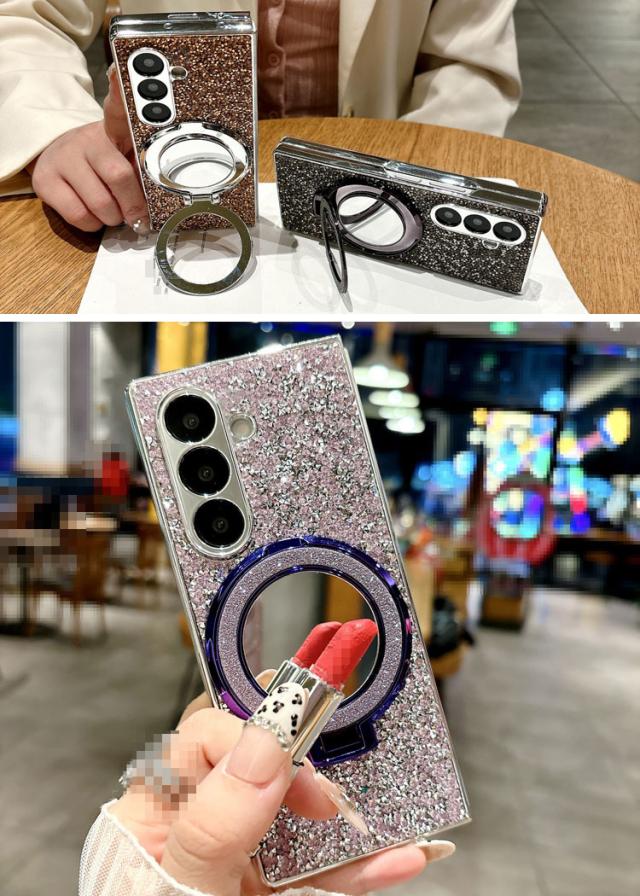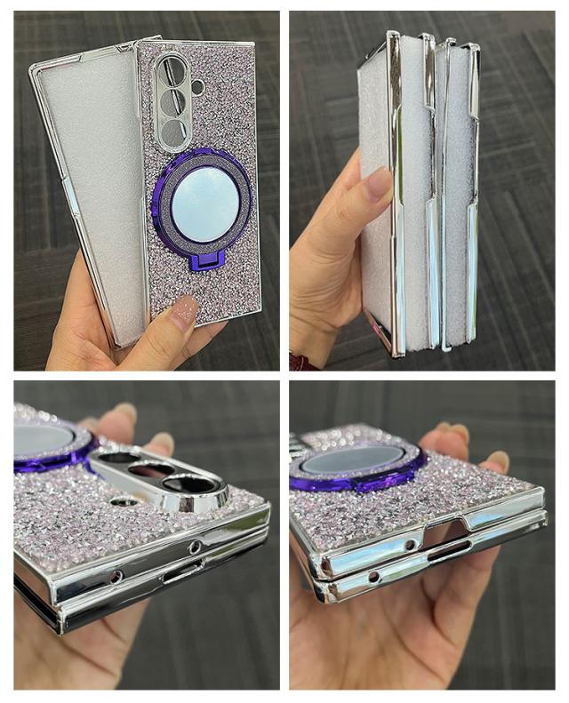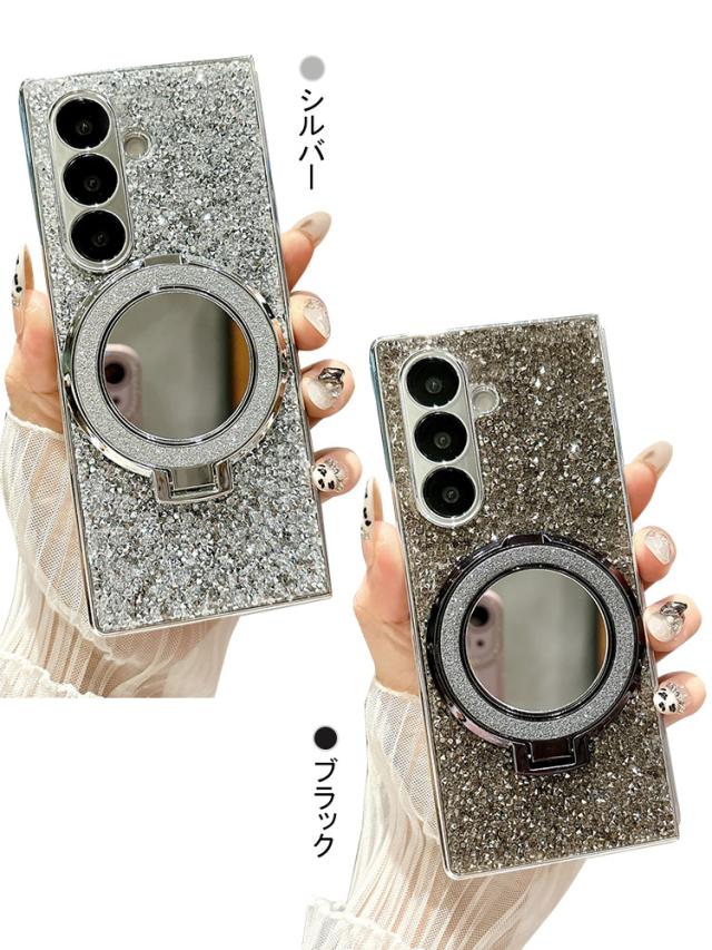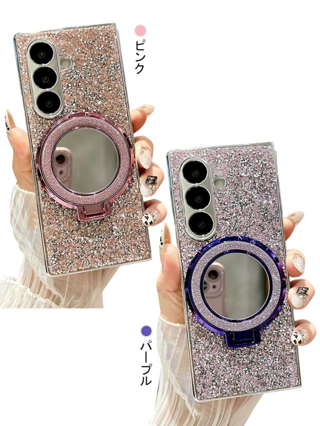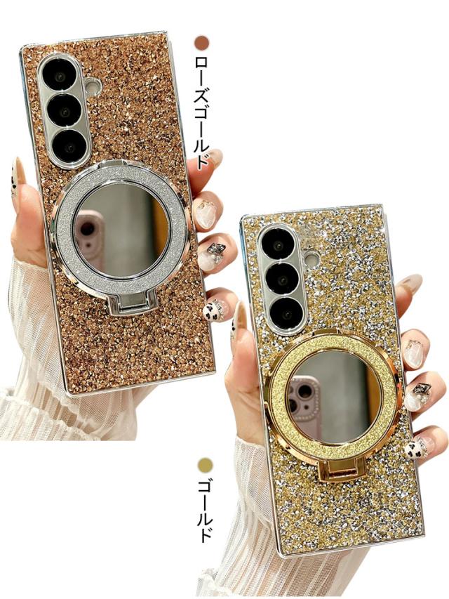 Galaxy Z Fold7 ケース カバー 折りたたみ型 一体型リング付き スタンド機能 かわいい キラキラ デコ プラスチック ハードケース シンプル ミラー付き 可愛い お洒落 Samsung サムスン ギャラクシー Z フォールド7 レディース 保護ケース