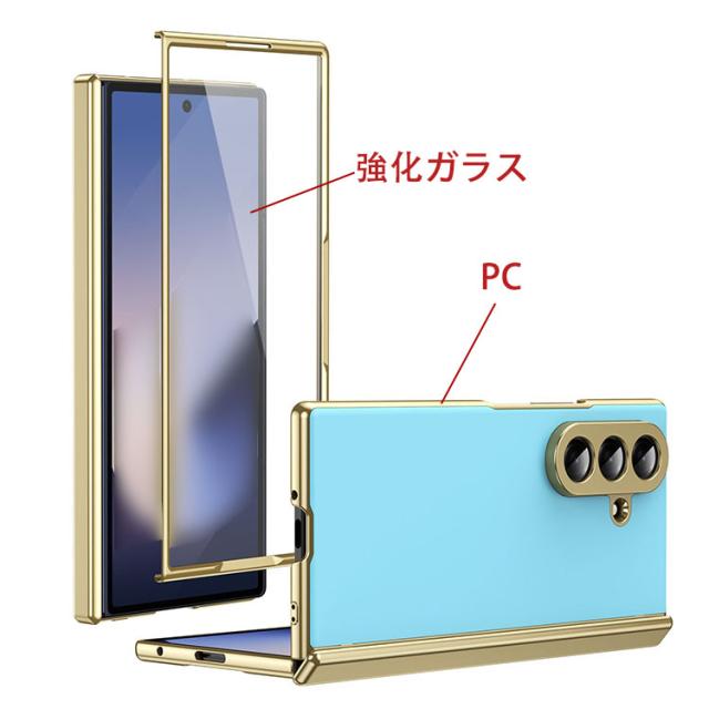 Galaxy Z Fold7 ケース カバー 折りたたみ型 メッキ 強化ガラスフィルム付き 強化ガラス+プラスチック 前面強化ガラス ハードケース シンプル 可愛い お洒落 Samsung サムスン ギャラクシー Z フォールド7 保護ケース アンドロイド おすすめ おしゃれ