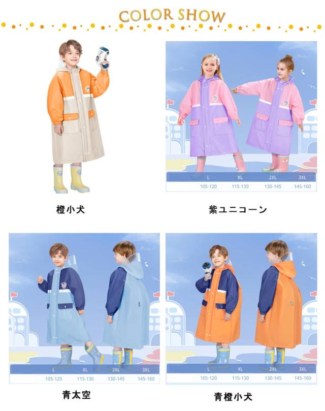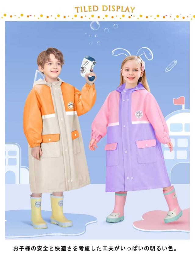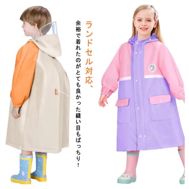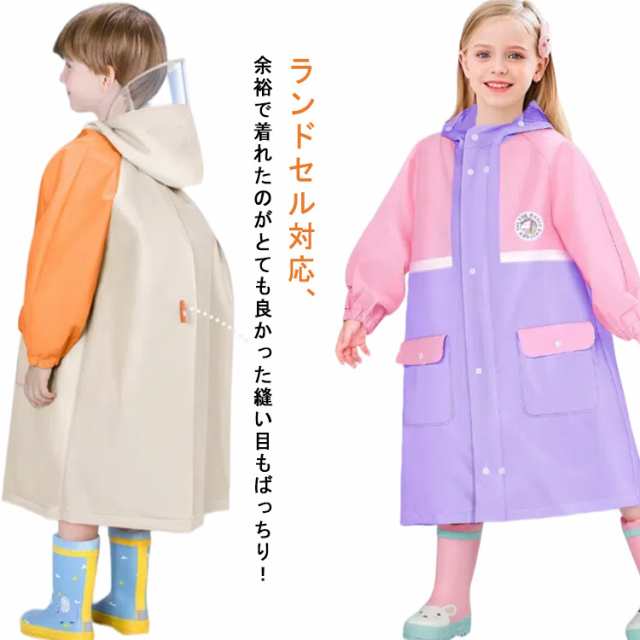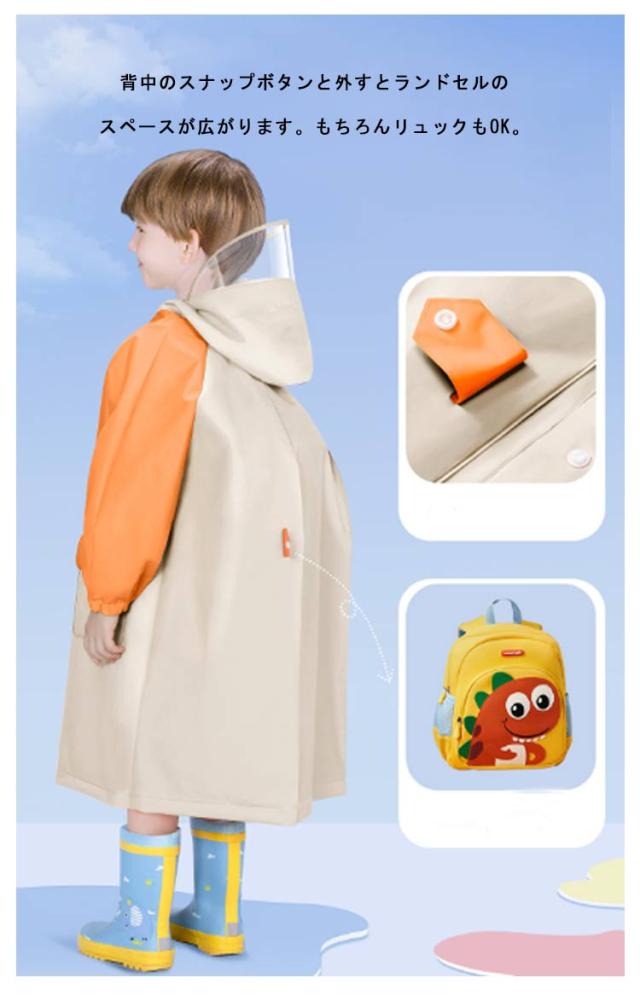 ランドセル対応 レインコート キッズ 女の子 男の子 かわいい おしゃれ 防水 撥水 子供 入園入学 雨具 幼稚園 小学生 カッパ ファスナー ジッパー ボタン ツバ 収納バッグ 付き 通学 通園 自転車 ジュニア L XL 2XL 3XL