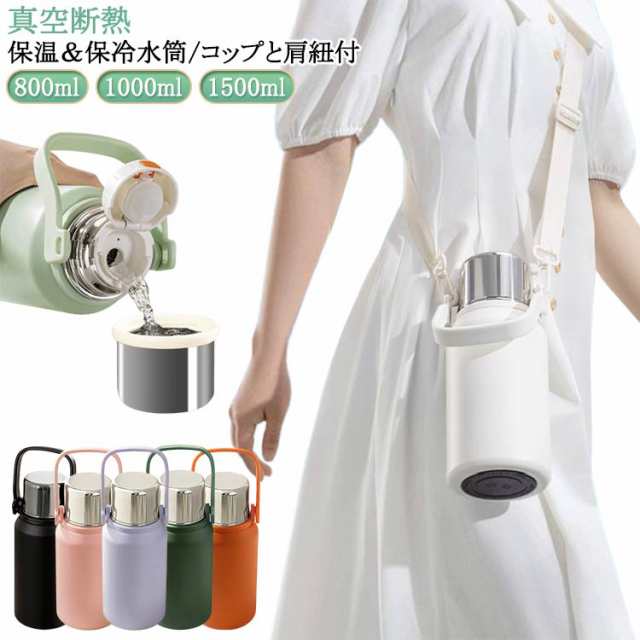 1000ml ショルダーストラップ付 ボトル 1500ml 1L 1.5L 800ml 真空ボトル ショルダー付き 茶こし付き 800ml 大人 真空断熱 ステンレス 水筒 マグボトル 水筒 コップ付き コップ付 保冷 真空ボトル キッズ 付き ストラップ 軽量 大容量 大容量 おしゃれ 1リットル 魔法瓶