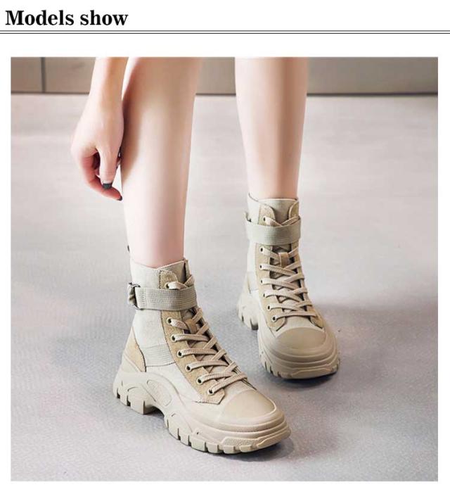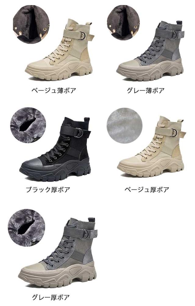 | ストリートの定番、不動の人気を誇る定番のワークブーツ! 足首ベルト付きでしっかりとサポートできて、すっきりとした印象に 表地はしっかりと丈夫なキャンバス生地を採用します。 約4.5cmの厚底デザインだから抜群の安定性あり、さりげなく美脚効果も演出してくれます。 凹凸のあるアウトソールで滑りにくく、雨の日も心配ありません。 寒さ対策のため、あったかな裏起毛タイプも追加。 普段着ファッション、ハイキングシューズ、 ライダーブーツ、 サバゲ、サバイバルゲームに 履きやすさとトレンドさ兼備する一足間違いなし | |