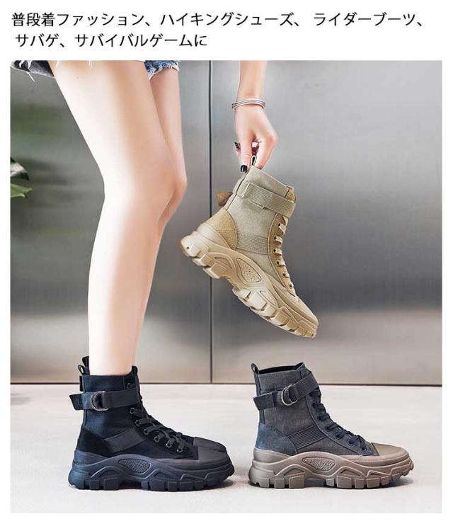 ミリタリーブーツ タクティカルブーツ コンバットブーツ ハイカット ブーツ レディース ワークブーツ ライダーブーツ 4.5cm 厚底 トレッキングブーツ マウンテンブーツ ワーク ミリタリー アウトドア おしゃれ 裏起毛 秋冬 暖かい 春 秋 大きサイズ