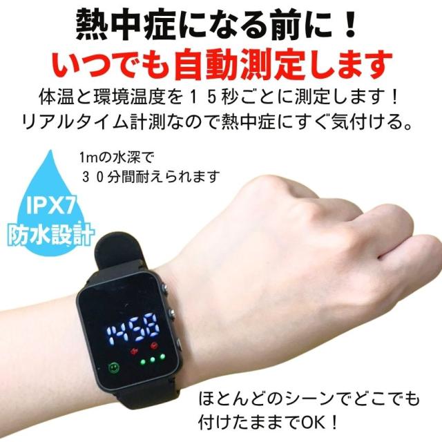 熱中症指数計 熱中症 時計 ウォッチ 防水 熱中症対策 熱中症計 熱中アラーム 警戒アラート アラームバンド グッズ 工事現場 夏 日射 アウトドア キャンプ 散歩 旅行 海 川 山 熱中 アラーム 警戒 熱中症 日中 猛暑 お盆 レジャー バーベキュー 海水浴