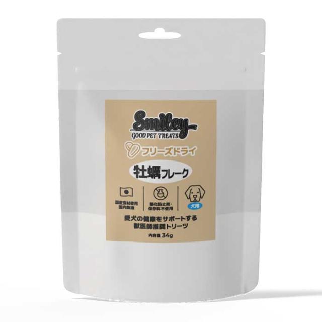 スマイリー 犬用フリーズドライ 牡蠣フレーク 34g Smiley 国産 (犬用おやつ)
