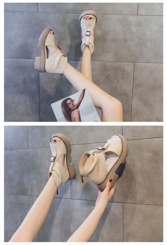 22.5cm?25.0cm 厚底サンダル ブーツサンダル レディース 5.5cmヒール サマーブーツ ショートブーツ フラットシューズ 歩きやすい 袴 ブーツ 滑り止め 厚底シューズ コンフォート 靴 歩きやすい 大きいサイズ